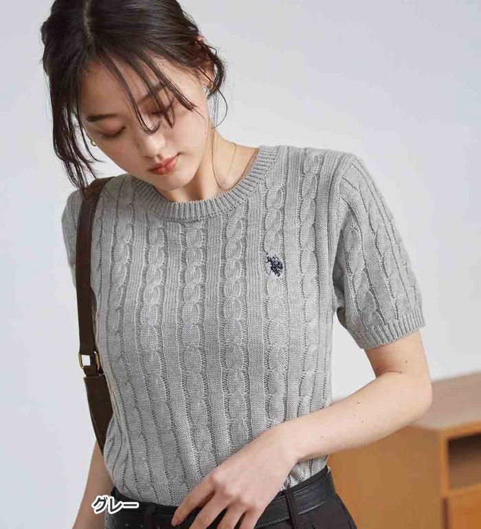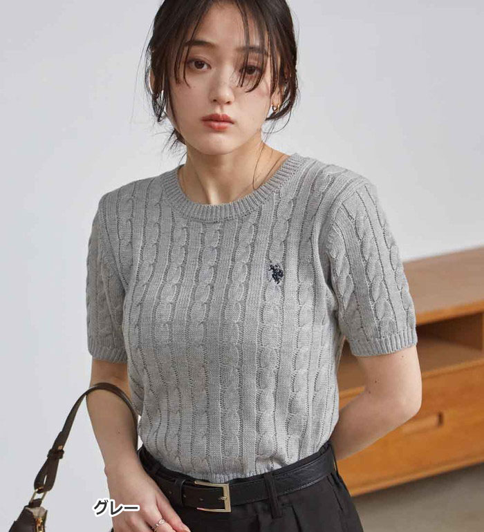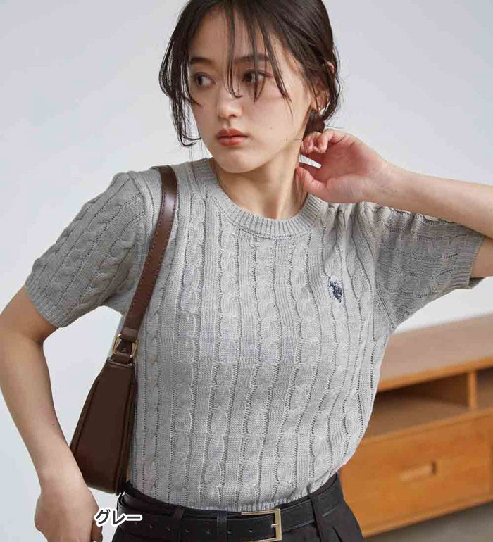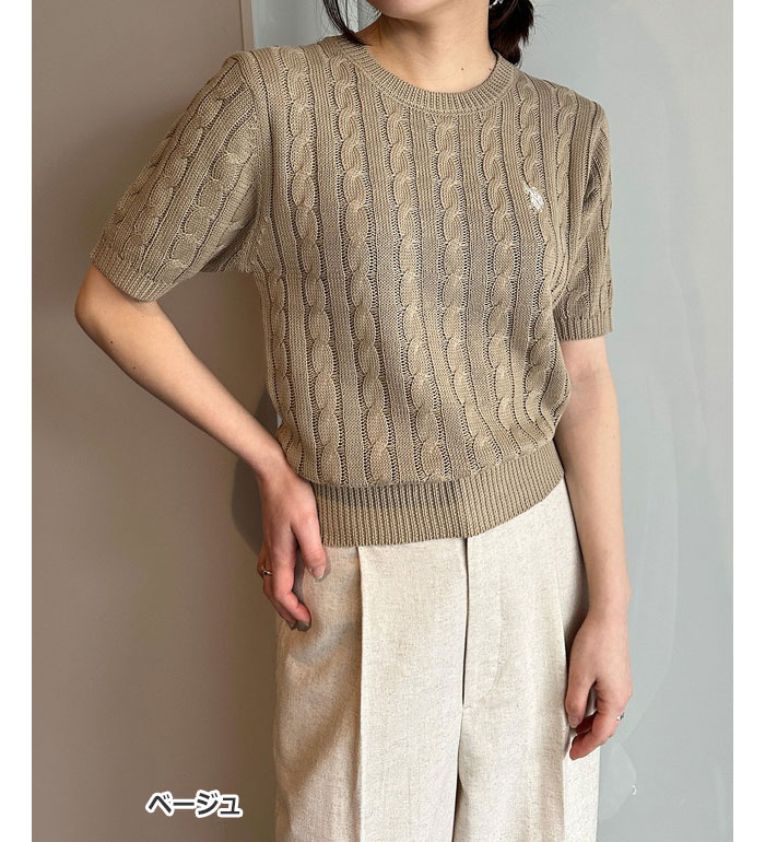 \まとめ買い最大25%OFFクーポン/ ニットプルオーバー レディース <U.S.POLO ASSN.>ワンポイント半袖ケーブルニット 2025夏 RANAN ラナン S-L 母の日