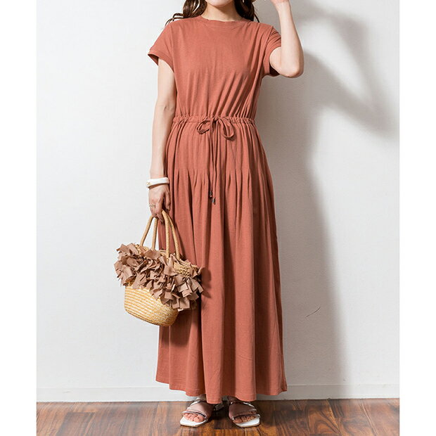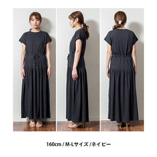 マキシワンピース マキシワンピ 美脚 脚長 タック 半袖 レディース ロングワンピ ロングワンピース ワンピース ルームウェア 大きいサイズ ゆったり 楽ちん 体型カバー シンプル 無地 可愛い カジュアル 大人女子 オシャレ 高見え きれいめ こなれ かわいい コットン 春 夏