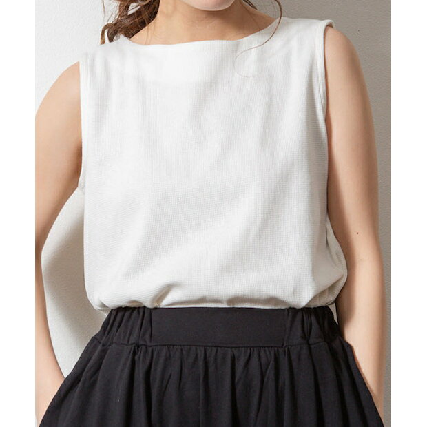 ワッフル タンクトップ ボートネック チュニック丈 シャツイン 重ね着 タンク インナー トップス レディース 大きいサイズ ゆったり 楽ちん 体型カバー シンプル 無地 可愛い カジュアル 大人女子 オシャレ 高見え きれいめ こなれ 上品 かわいい 人気 定番 春 夏 秋 冬