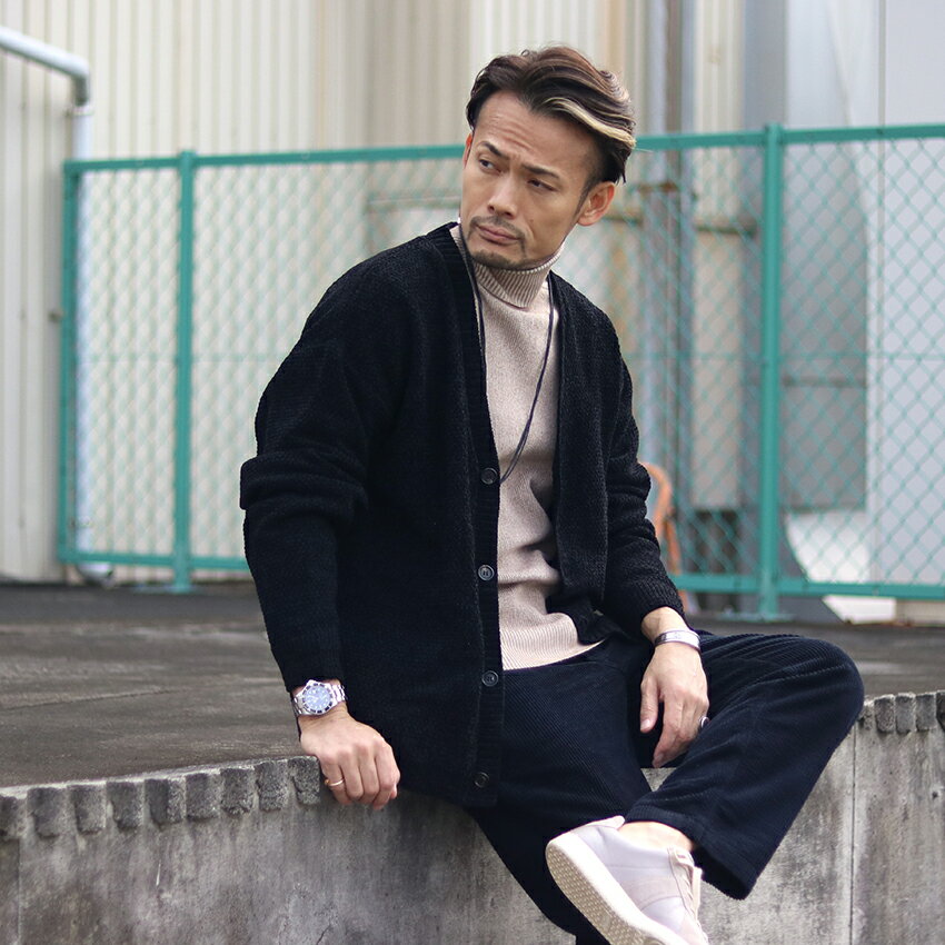 FORTUNA フォルトゥナ オム モールニットカーディガン FHCD-0167 ECOTEC ChenilleKnit CD 2024年秋冬新作 エコテック モールニット カーディガン メンズ M〜XLサイズ グレー ブラック トップス スリーシーズン 高級 軽量 ツヤ 大人 長袖 お洒落 無地