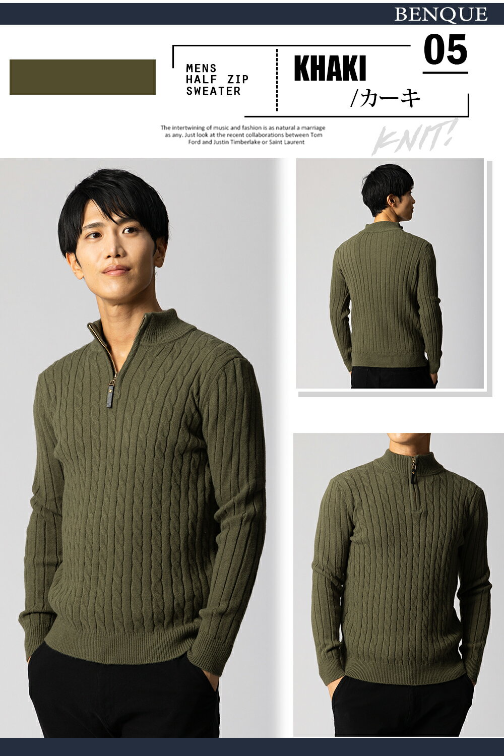【最大500円クーポン!!】セーター メンズ ハーフジップ ハイネック ケーブルニット カジュアル 無地 長袖 秋冬 暖かい ビジネス 通勤 通学 おしゃれ ニットセーター [M~2XL]