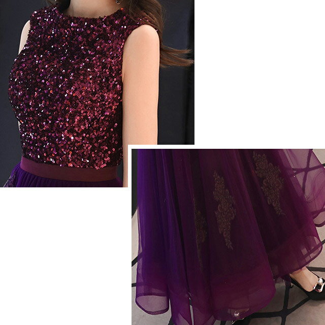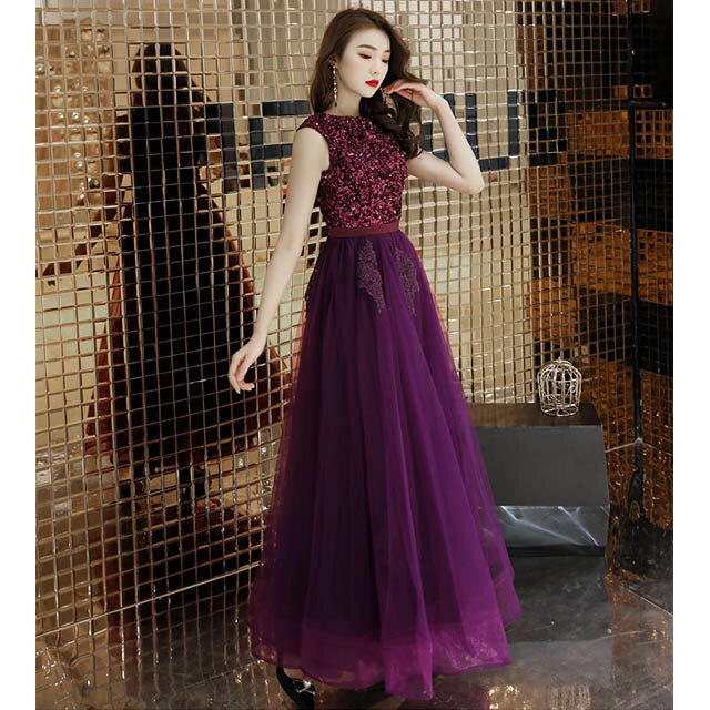 パープル イブニングドレス スパンコール ドレス キラキラドレス 演奏会 発表会ドレス ノースリーブ ロング丈 パーティードレス キレイめ ロングドレス 結婚式ドレス 二次会ドレス お呼ばれドレス 送料無料