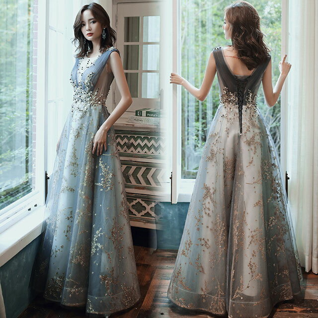 イブニングドレス スパンコールドレス キラキラドレス ロングドレス ノースリーブ 発表会ドレス チュール 編み上げ 演奏会ドレス キレイめ パーティードレス 二次会ドレス お呼ばれドレス 送料無料