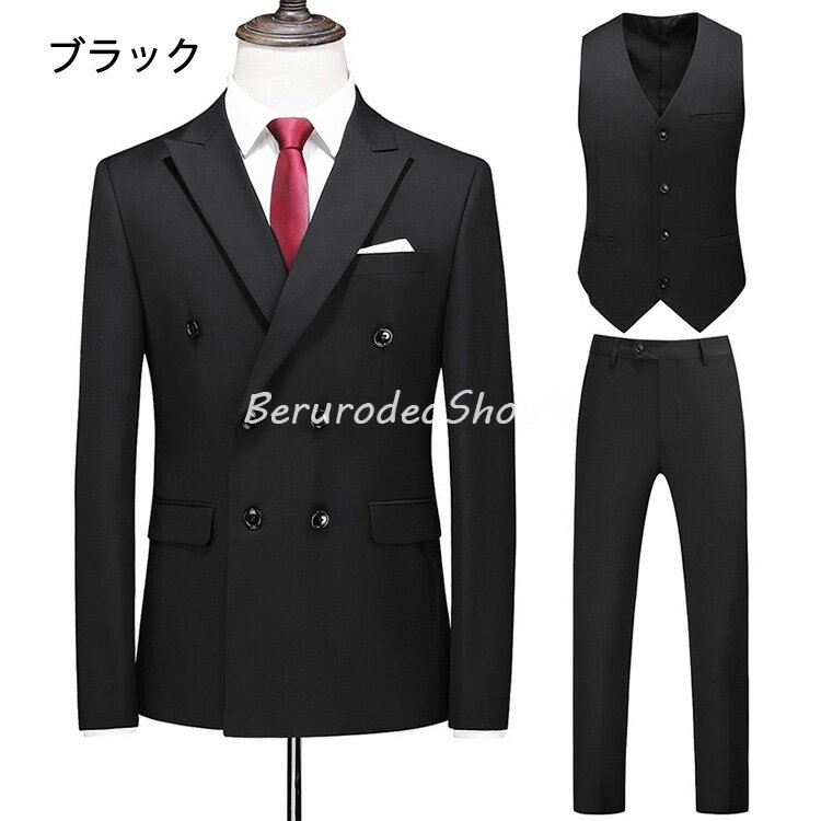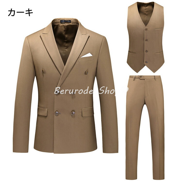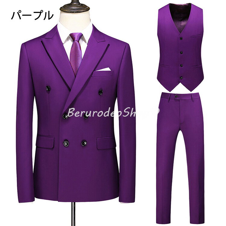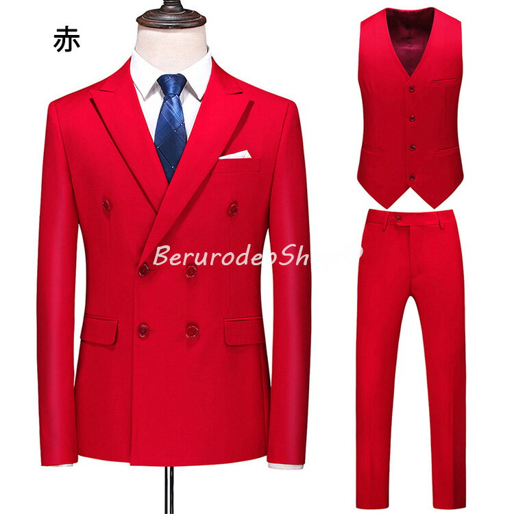 10色選択可 スーツ メンズ グレー ビジネススーツ 3点セット ジャケット+ベスト+パンツ ブラック フォーマル リクルートスーツ 面接 就職活動 3ピーススーツ 紳士服 タキシード ホワイトスーツ 結婚式 二次会 イエロー グリーン パープル カーキ 赤 ブルー ピンク 送料無料