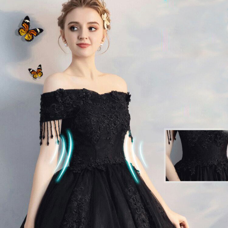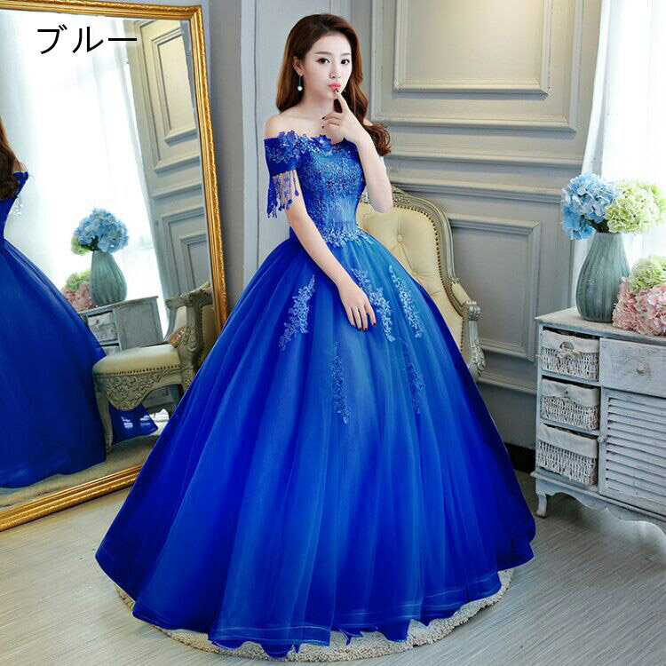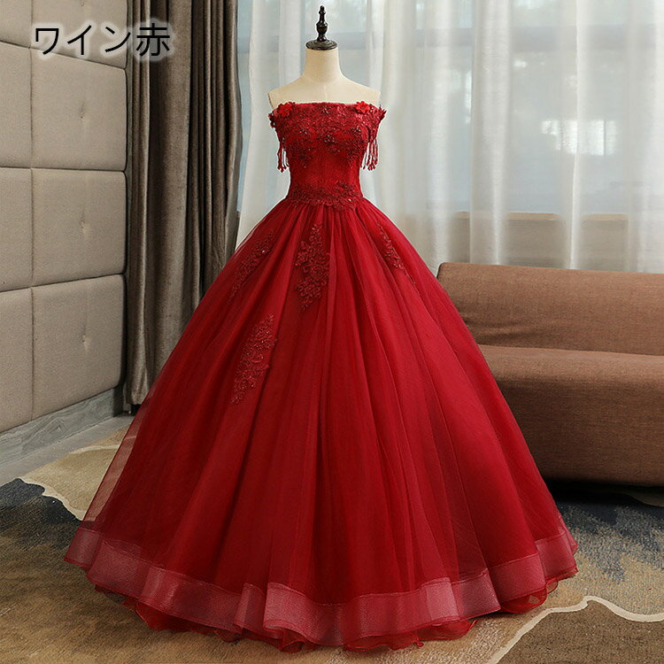 送料無料 全6色 イブニングドレス 黒 オフショルダー ビーズ フリンジ キレイめ ロングドレス 発表会ドレス ブラック レース 演奏会ドレス ワイン赤 赤 ブルー 水色 イエロー パーティードレス 結婚式ドレス 二次会ドレス XS S M L XL XXL XXXL