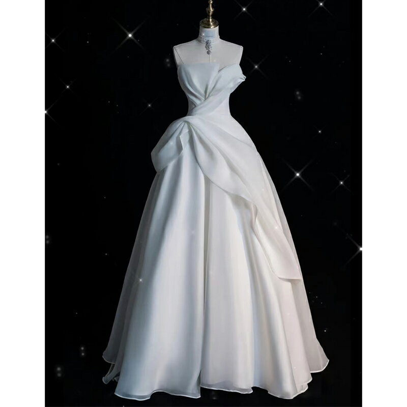 送料無料 ウェディングドレス 二次会ドレス サテンドレス 白 ノースリーブ Aライン ロングドレス 二次会 結婚式ドレス ビスチェドレス ベアトップ 可愛い ホワイトドレス 無地 ウェディング トレーンドレス 海外挙式 撮影 無地 XS S M L XL XXL XXXL