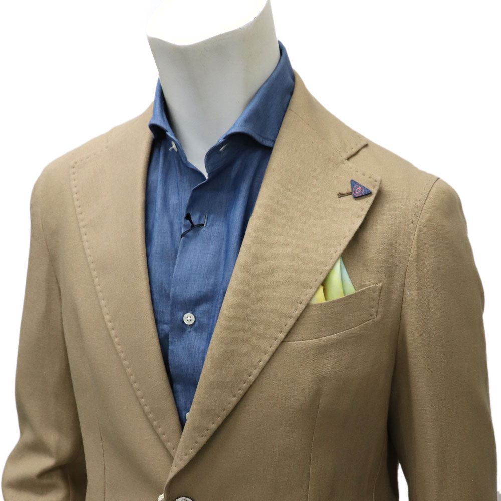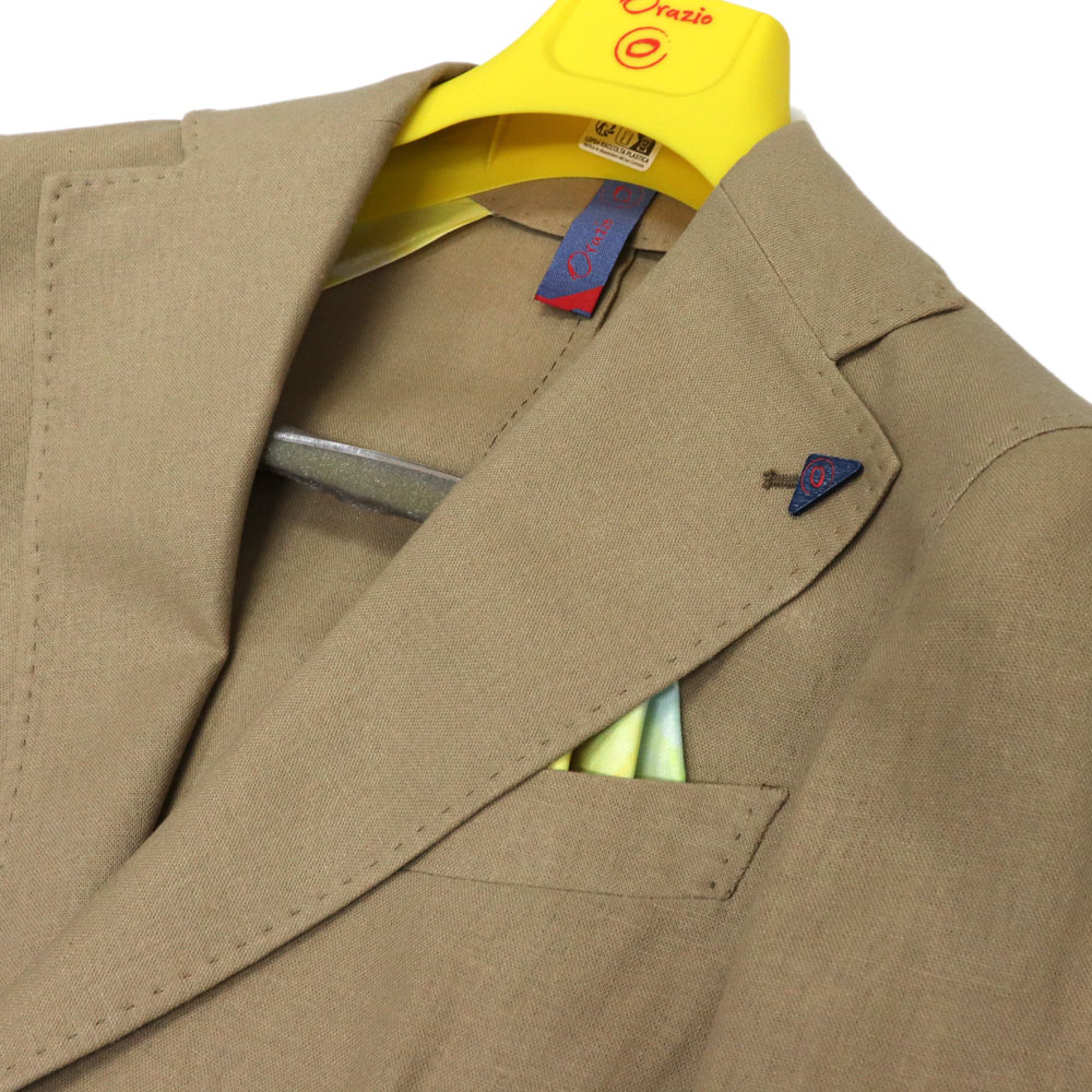 Orazio ≪オラツィオ≫ イタリアブランド 麻混 アンコン セットアップスーツ メンズ 春夏 超軽量一枚仕立て カジュアルスーツ ≪ベージュ 無地 ジャケット&パンツ≫ 【送料無料】88000SK