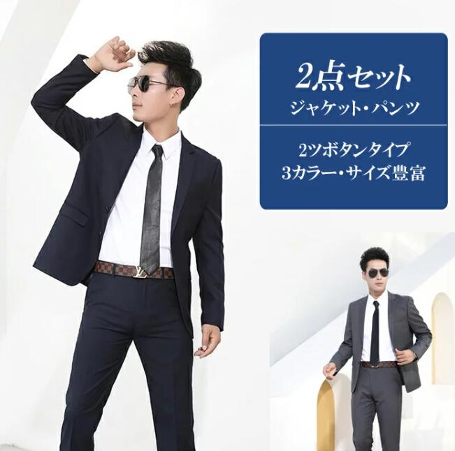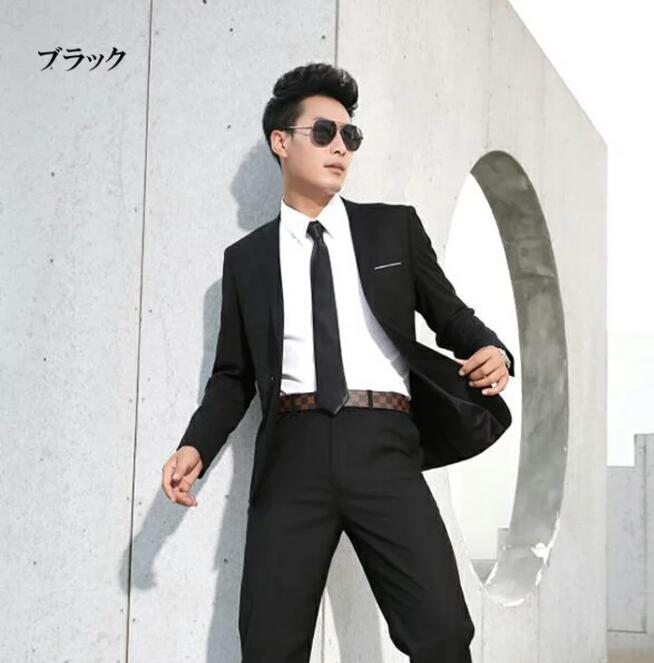 【2点セット カラー:ネイビー ブラック ジャケット【2点セット】上下セット スリム ビジネス 春夏 通年 スリムスーツ ビジネススーツ 紳士 オシャレ 【men3-zk165cm】