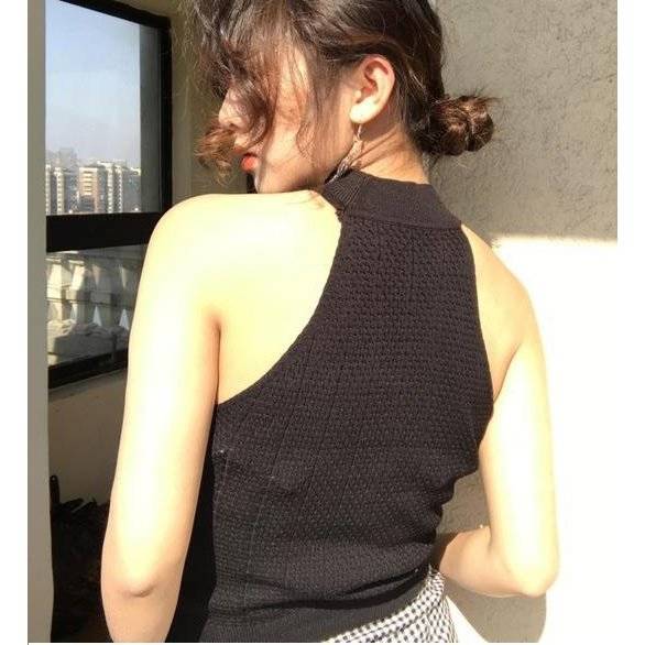 トップス ニットトップス 無地 ホルターネック ノースリーブ 上着 ホルターネック ヘソ出しトップス tシャツ 3色 女性用 大人 上品 ファッション セクシー
