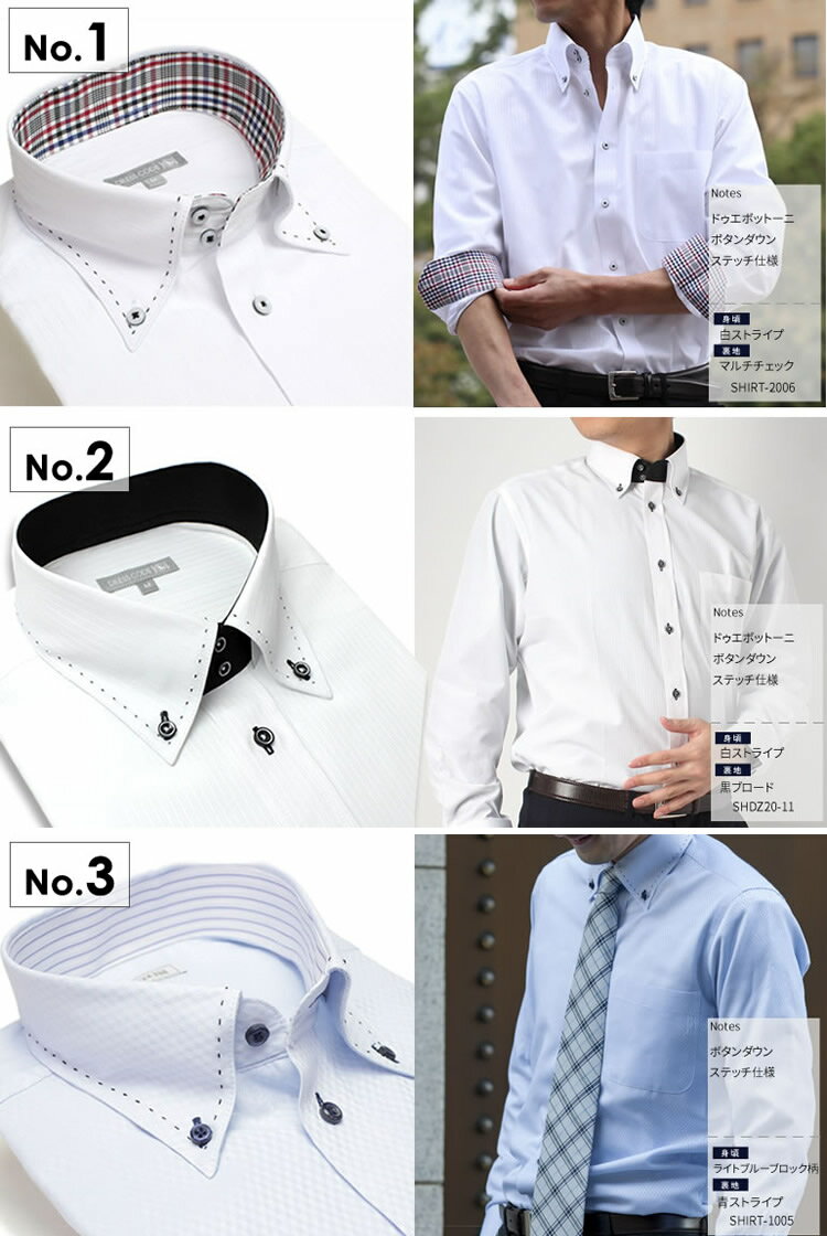 襟高デザイン ドレスシャツ ボタンダウン(ステッチ)ワイシャツ 長袖 白 メンズ 長袖 ワイシャツ 形態安定 豊富なサイズ ビジネスや結婚式に スリムからゆったりまで 黒 シャツ [ 白シャツ ] ギフト 新生活 就職祝い 男性 卒業式 入学式 転職祝い お祝い返し
