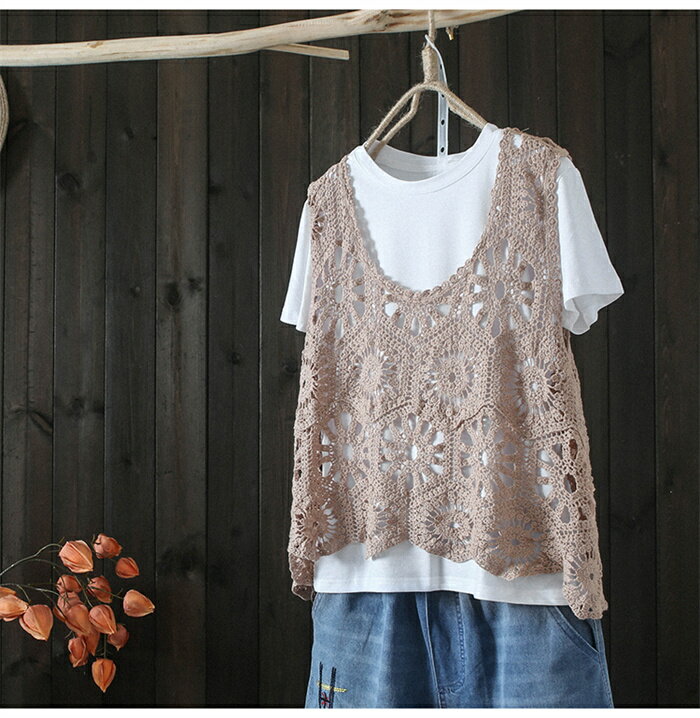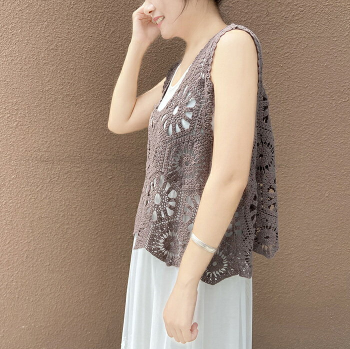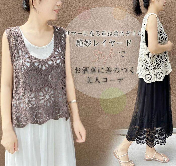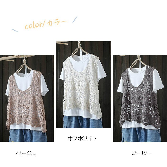 【スーパーSALE半額OFF!】ベスト レディース 春夏 ニットベスト 透かし編み トップス クロシェ編みベスト 大きいサイズ プルオーバー かぎ編み 重ね着 レースベスト レイヤード きれいめ カジュアル 春 夏 秋 おしゃれ 森ガ
