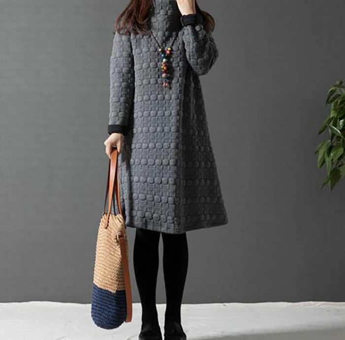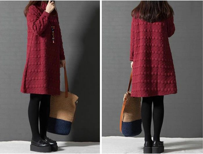 裏起毛 チュニック レディース 秋冬 長袖 チュニック 冬 ワンピース 大人可愛い ハイネック チュニックワンピース 森ガール プルオーバー 膝丈 長袖 大きいサイズ ワンピ ミディ レトロ 体型カバー ひざ丈 春 秋