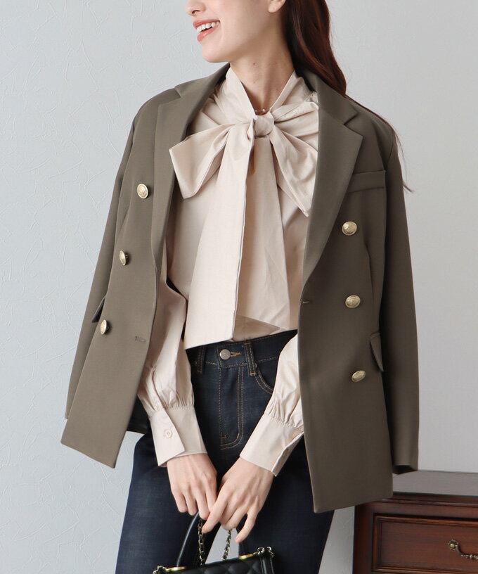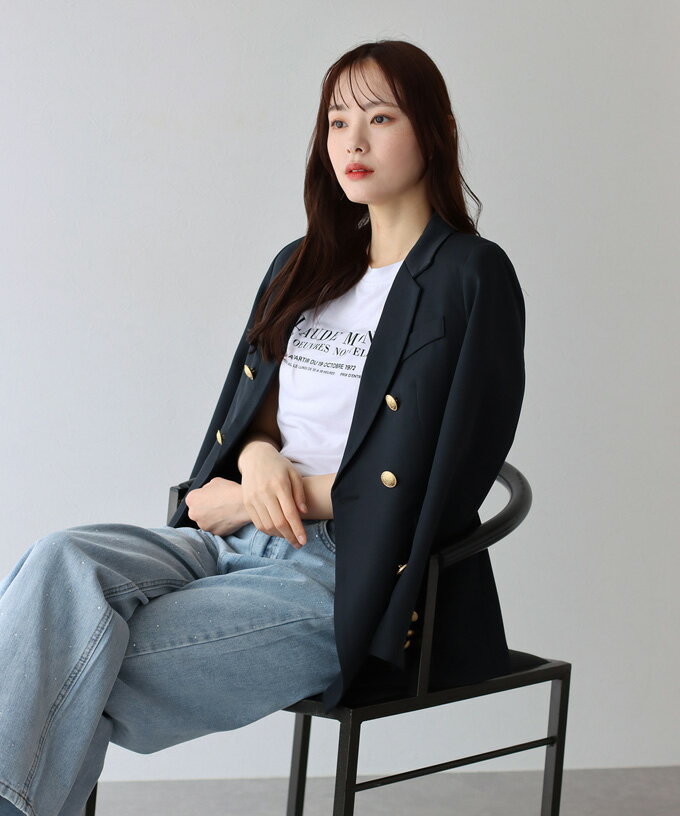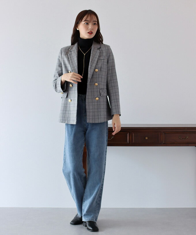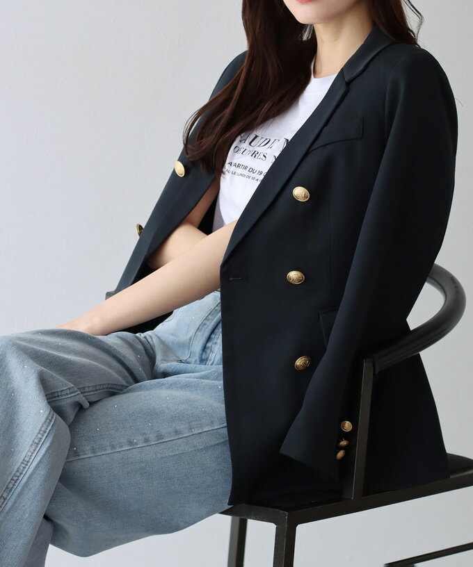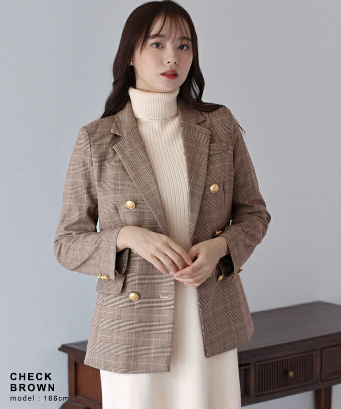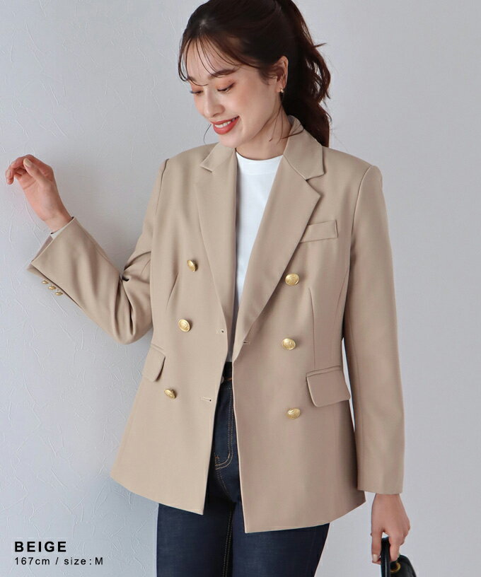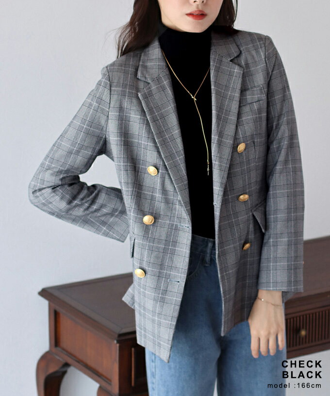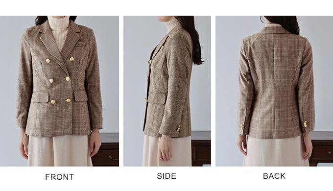 【送料無料】【新色追加】テーラードジャケット ジャケット レディース ライトアウター 羽織り 春 秋 定番 ベーシック トレンド 長袖 金ボタン ダブル 無地 チェック柄 シンプル カジュアル きれいめ 大人 おしゃれ 通勤 オフィス BLUEEAST【あす楽】