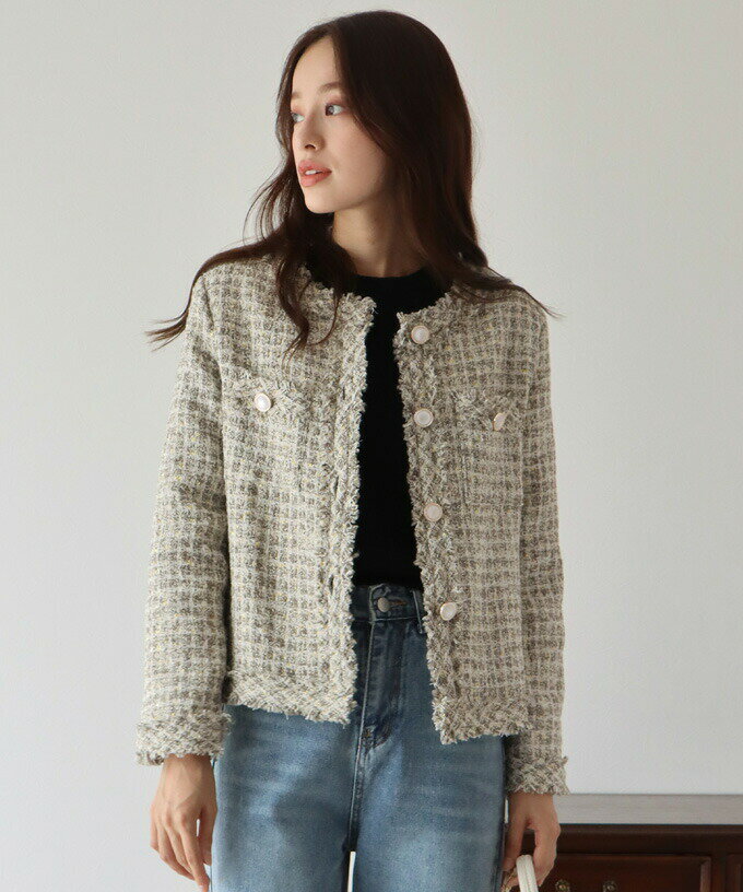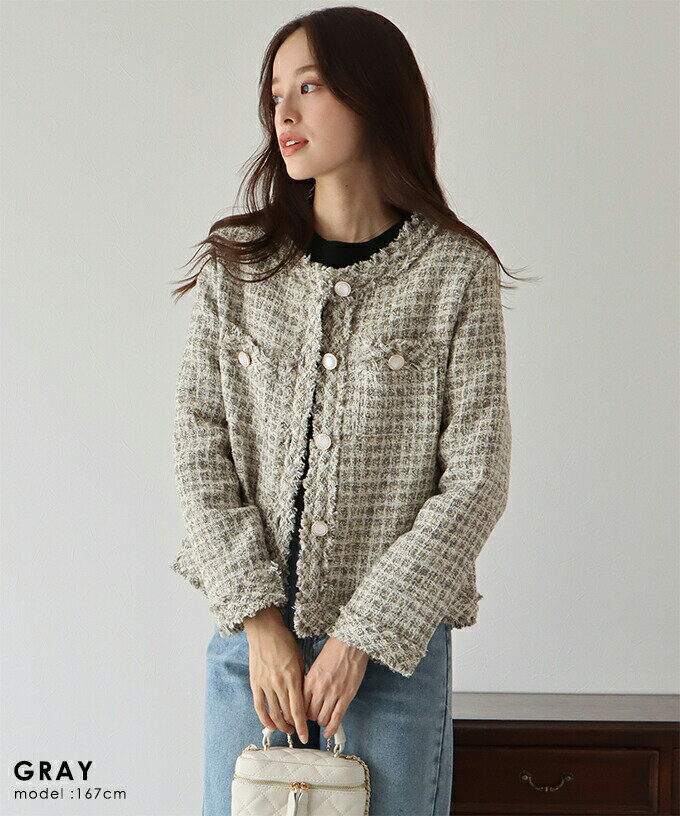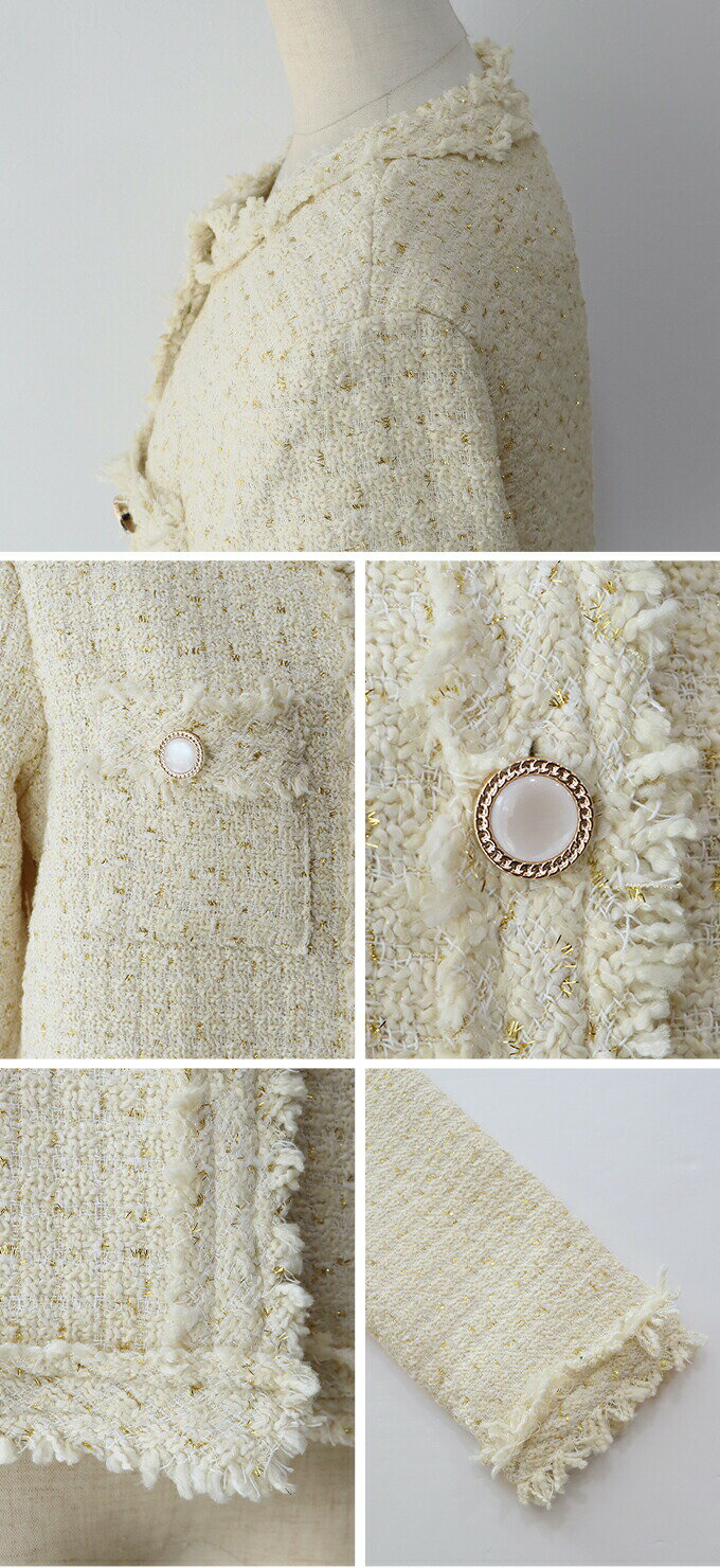 【送料無料】【新色追加】ツイードジャケット レディース ジャケット アウター 羽織り ツイード ノーカラー カラーレス ポケット付き カジュアル おしゃれ セレモニー 卒業式 卒園式 入学式 入園式 謝恩会 パーティー 結婚式 ママ BLUEEAST【あす楽】