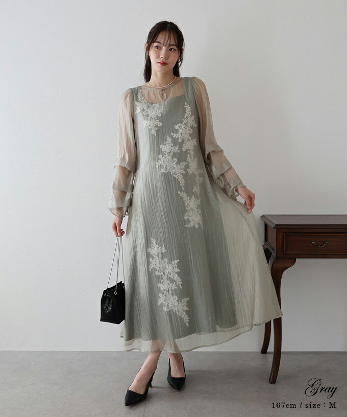 【2/12 12:59まで!990円OFF中】【送料無料】モチーフレースシアーAラインドレス 結婚式 ドレス ワンピース 二次会 謝恩会 フォーマル ロング丈 マキシ丈 パーティードレス オーガンジー レース 袖あり 長袖 シアー 透け感 おしゃれ かわいい BLUEEAST