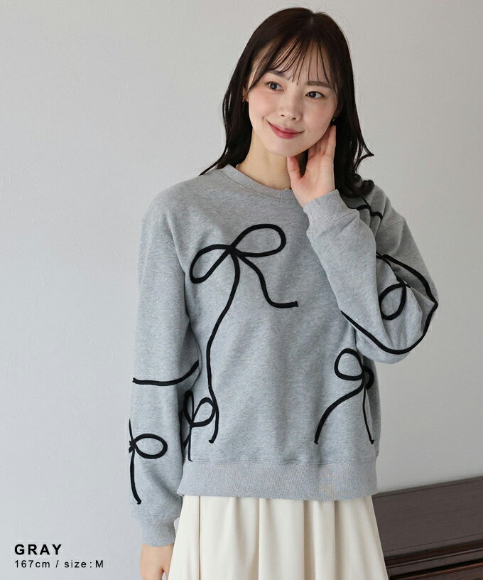 【送料無料】リボンコード刺繍スウェット レディース トレーナー プルオーバー 長袖 ゆったり カジュアル シンプル おしゃれ トレンド かわいい 春 秋 冬 BLUEEAST