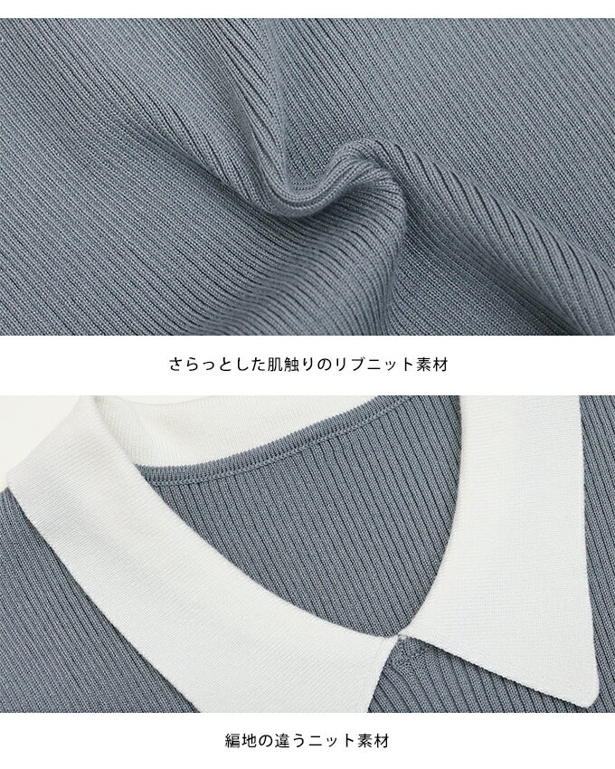 【送料無料】白衿パフスリーブニット レディース 半袖 五分袖 トップス 春 秋 プルオーバー パフスリーブ 襟付き リブ編み パフ袖 シンプル カジュアル きれいめ ベーシック おしゃれ トレンド 着回し BLUEEAST