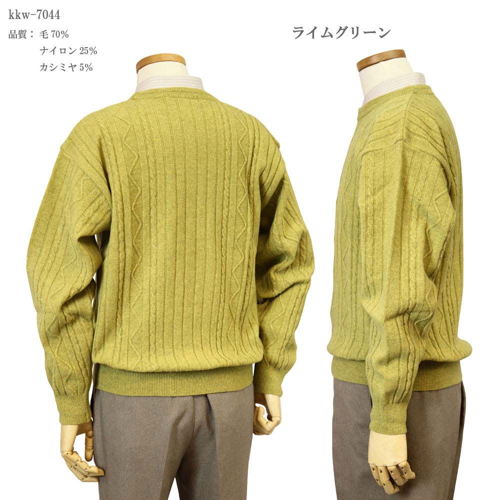◆SALEさらにクーポンで20%OFF◆ セーター 丸首(クルーネック) カシミヤ入りウール混 日本製 アラン柄ニット 10ゲージ 紳士/メンズ/シニア/国産【送料無料】 (7044)
