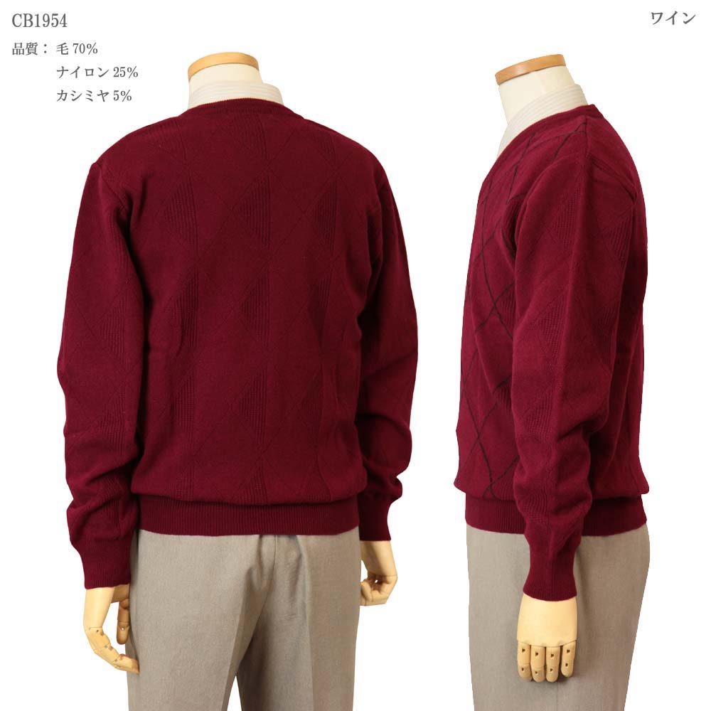 ◆SALEさらにクーポンで20%OFF◆ セーター V首 カシミヤ入りウール混 日本製 バイアス柄 10ゲージ 紳士/メンズ/シニア/国産【送料無料】 (1954)