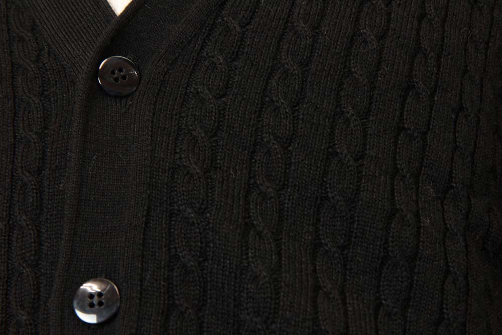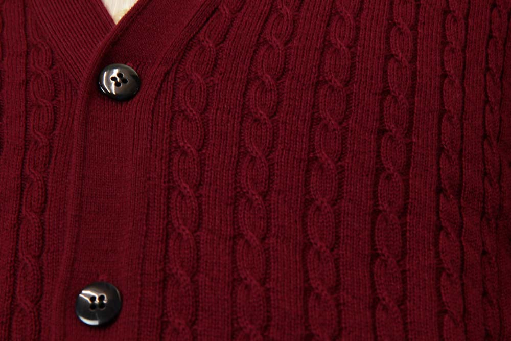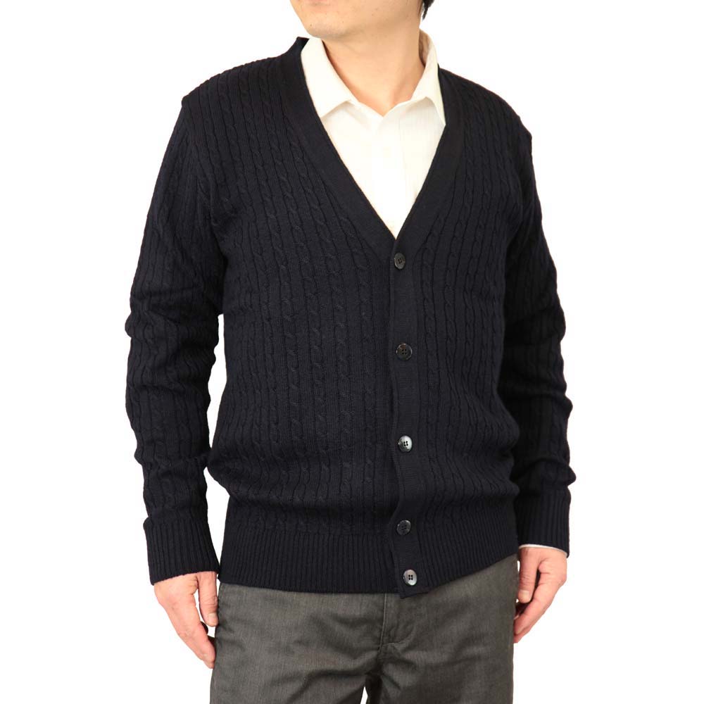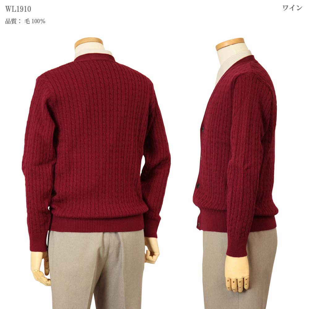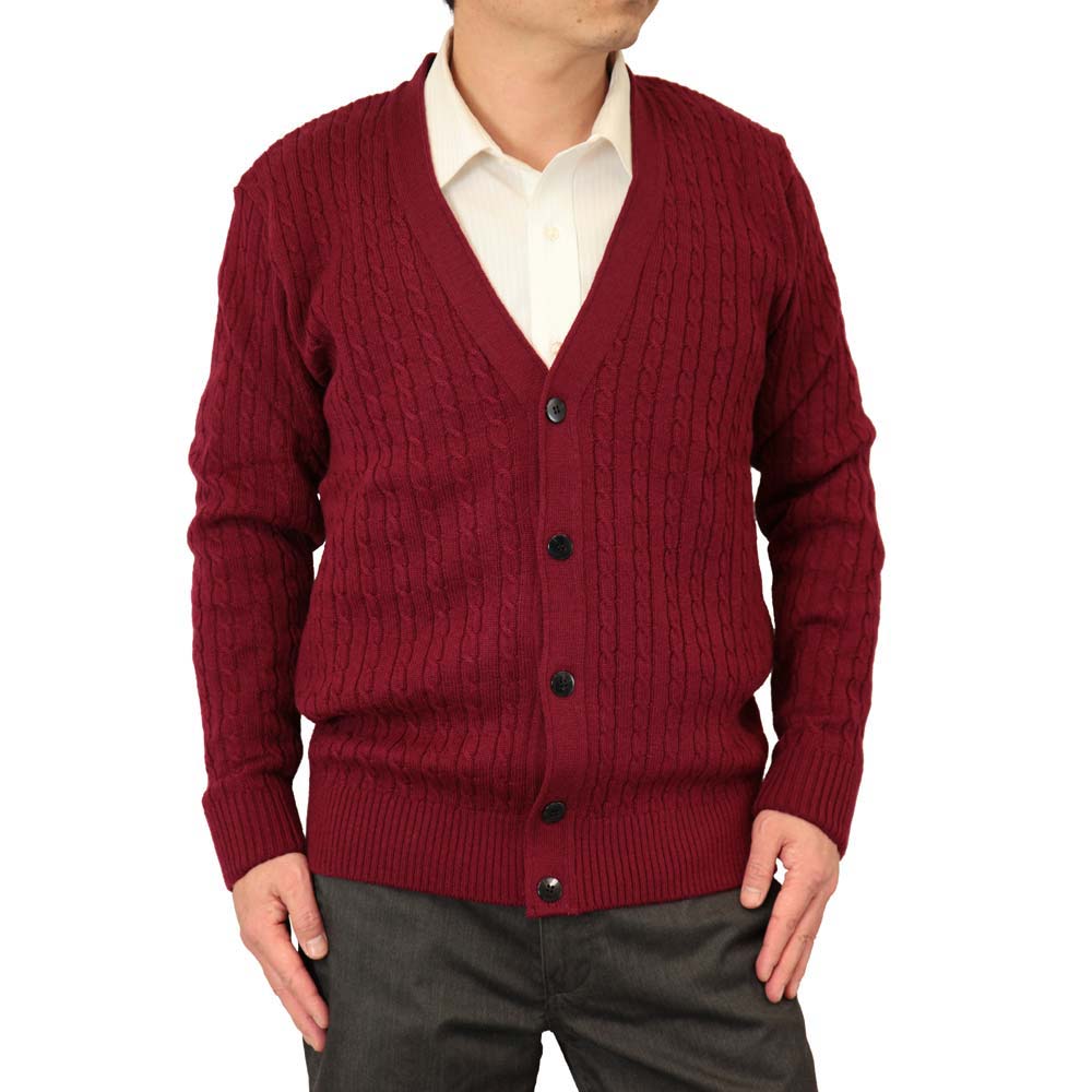 ◆SALEさらにクーポンで20%OFF◆ カーディガン V首 ウール100% 日本製 定番のケーブル柄ニット 10ゲージ 紳士/メンズ/シニア/国産【送料無料】 (1910)