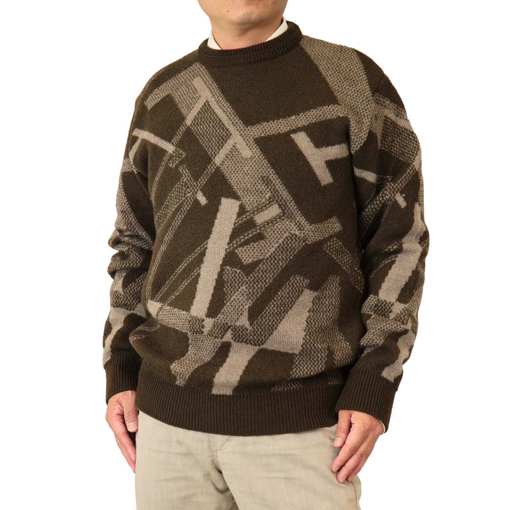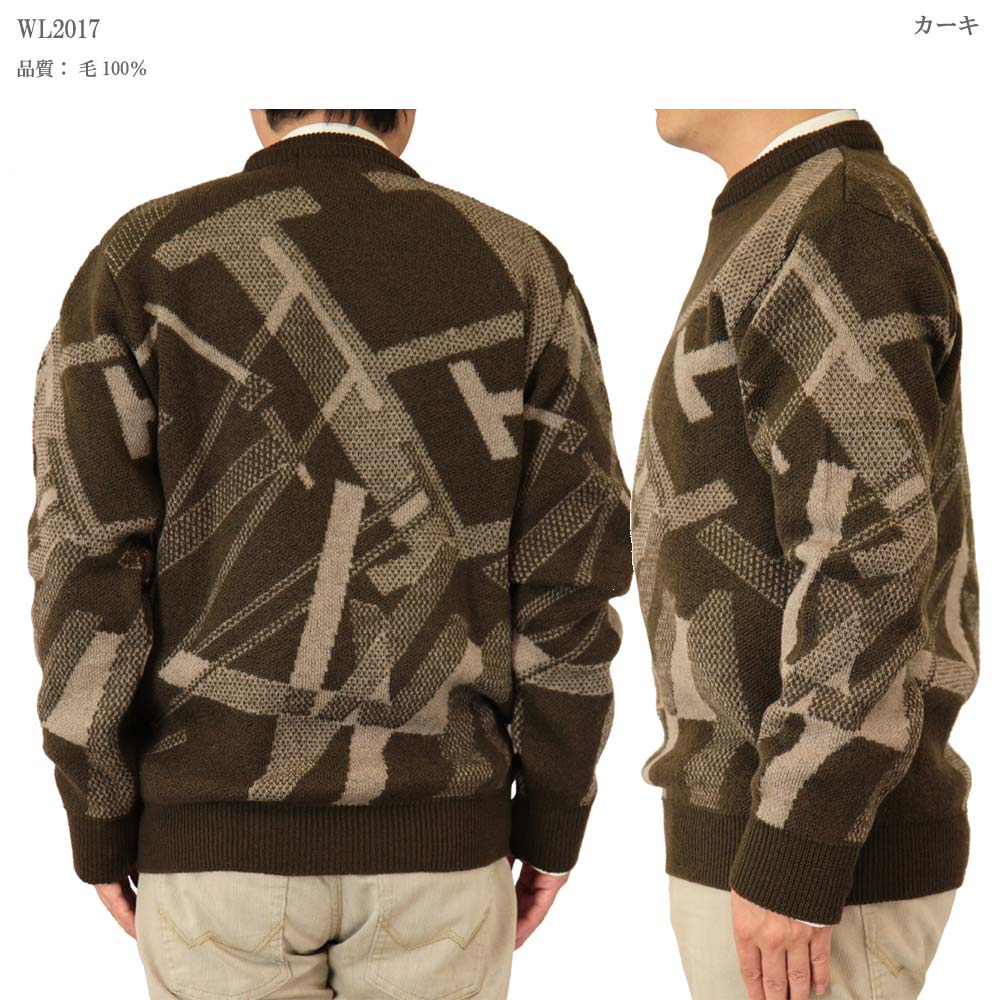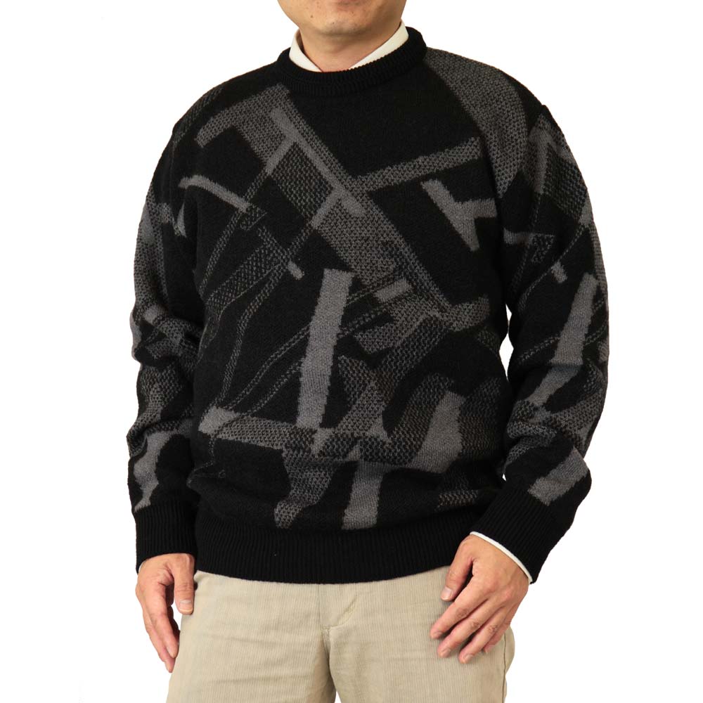◆クーポンで20%OFF◆ セーター 丸首(クルーネック) ウール100% 日本製 ジャカード編みデザインニット 7ゲージ 紳士/メンズ/シニア/国産【送料無料】 (2017)