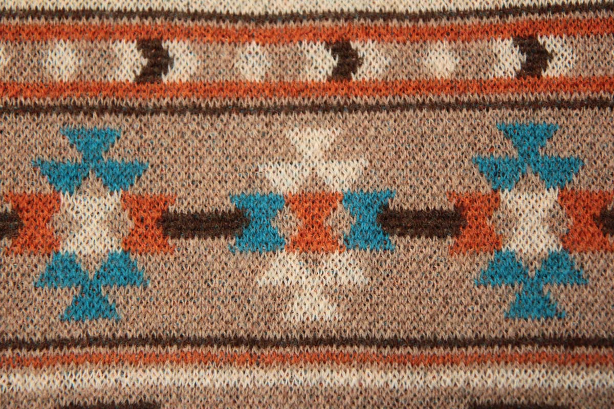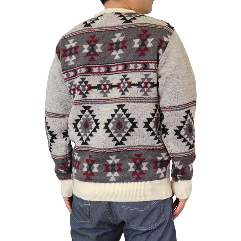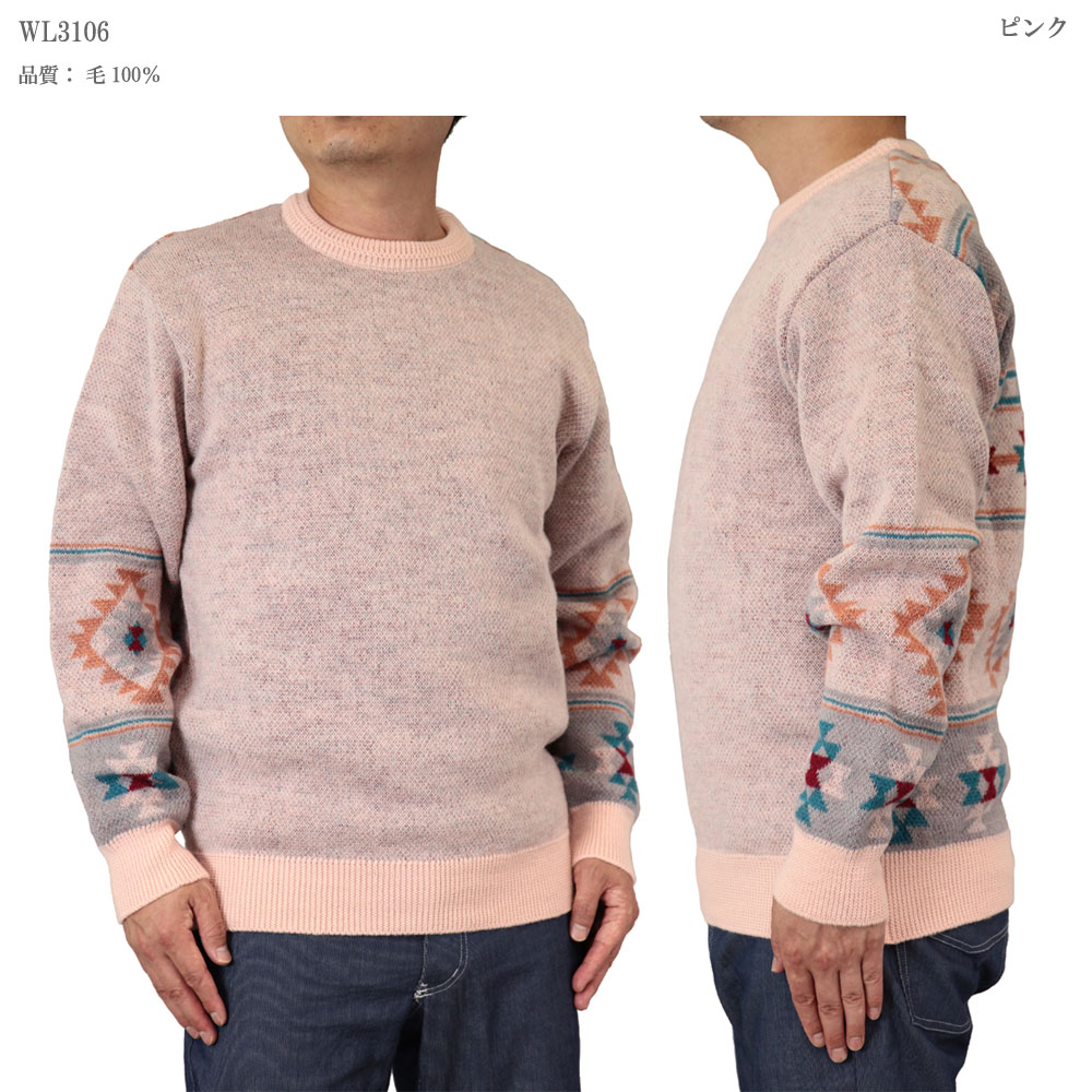 ◆クーポンで20%OFF◆ セーター 丸首(クルーネック) ウール100% 日本製 ジャカード編み背面チマヨ柄ニット(前身無地) 7ゲージ 紳士/メンズ/シニア/国産【送料無料】 (3106)