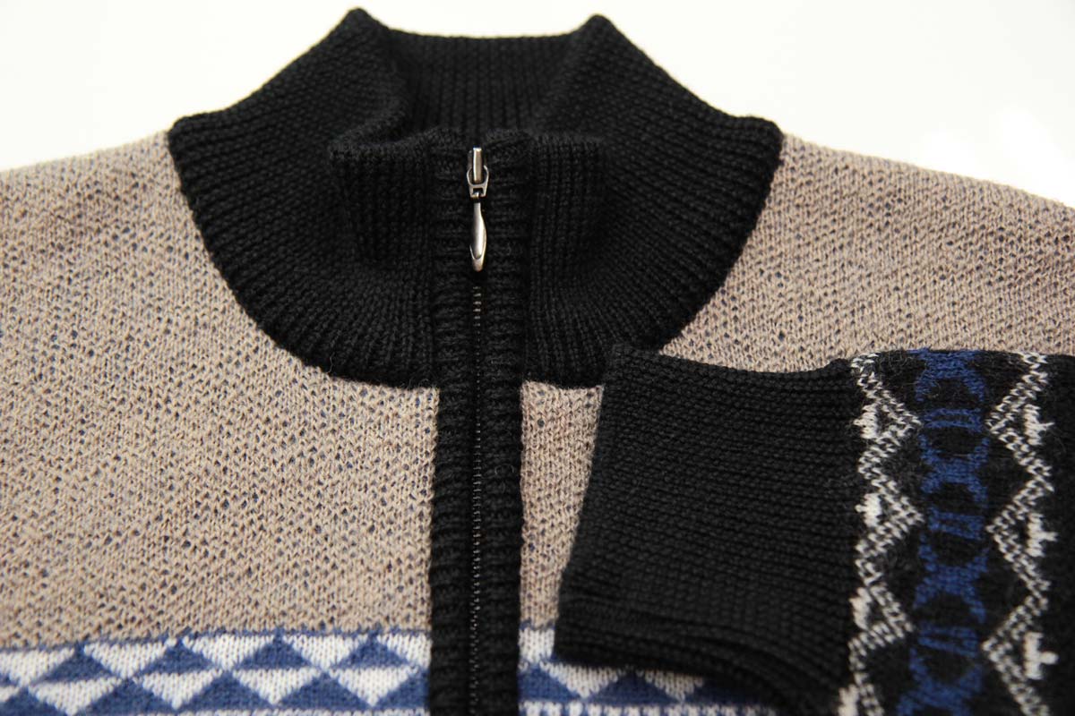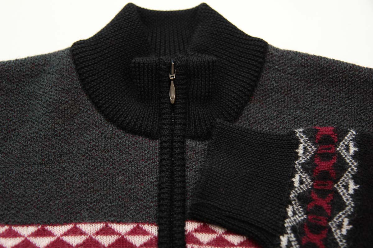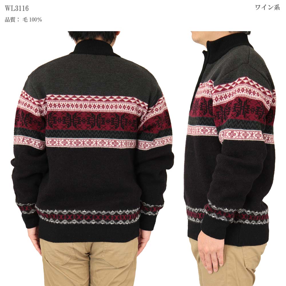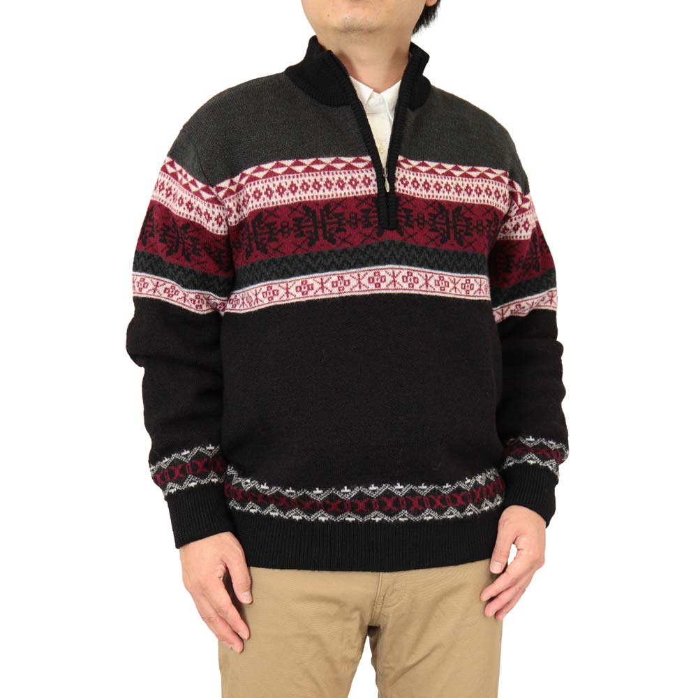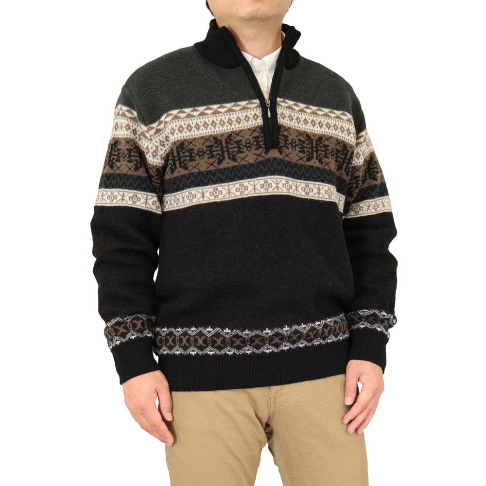 ◆クーポンで20%OFF◆ セーター ハーフジップ(ハイネック) ウール100% 日本製 ジャカード編みフェアアイル柄ニット 7ゲージ 紳士/メンズ/シニア/国産【送料無料】 (3116)