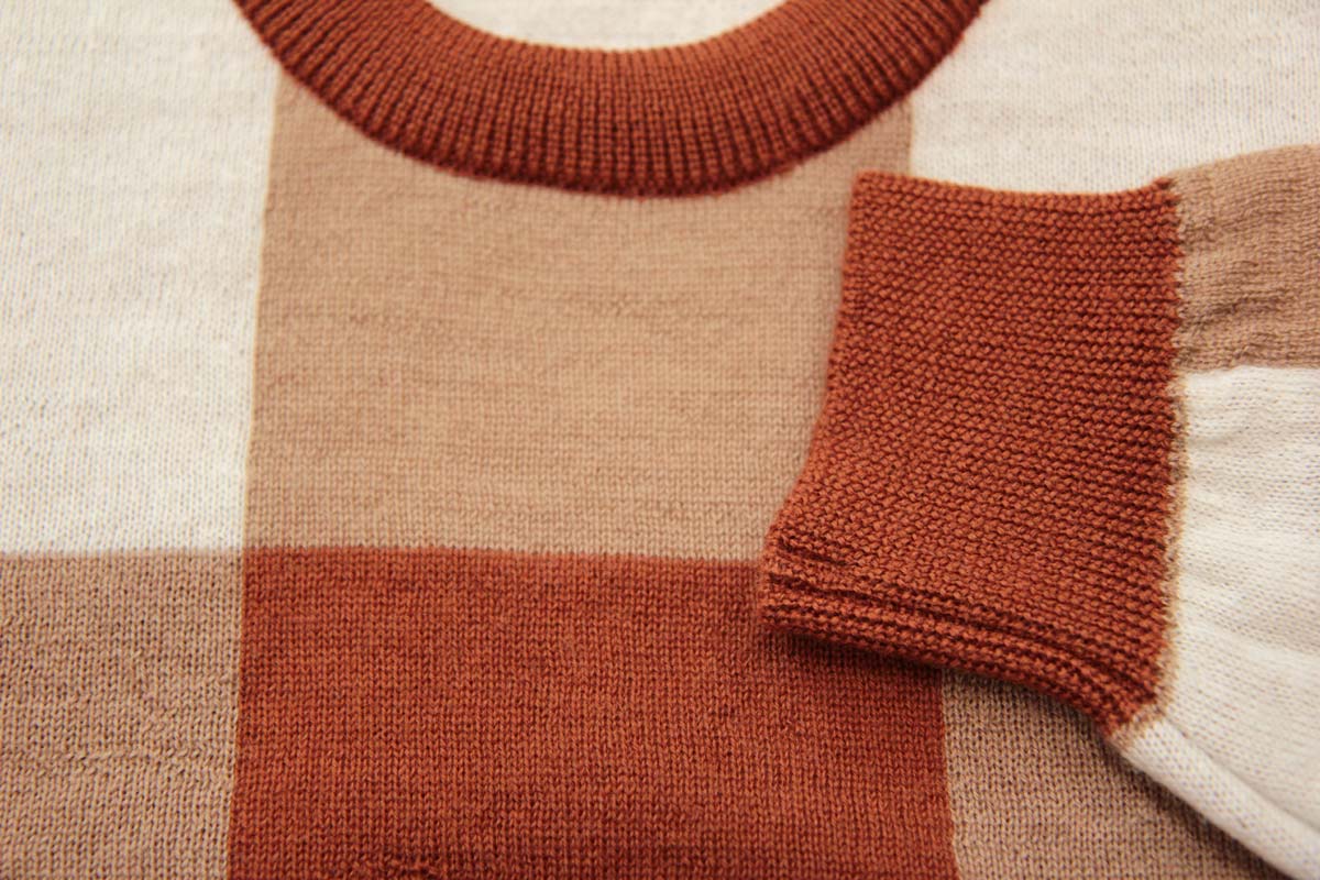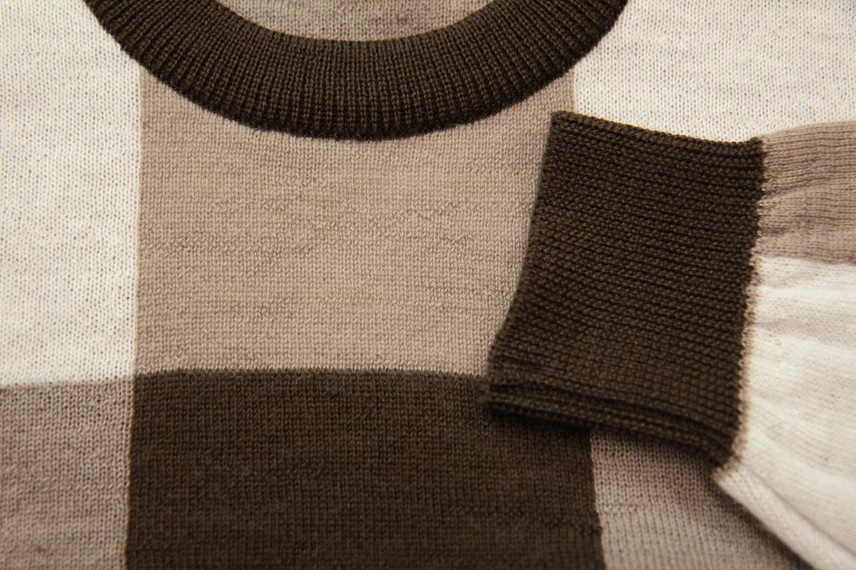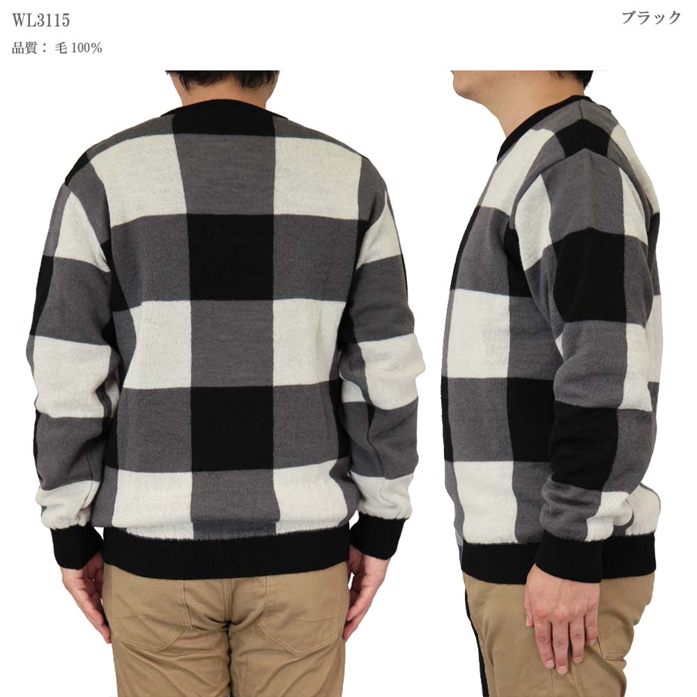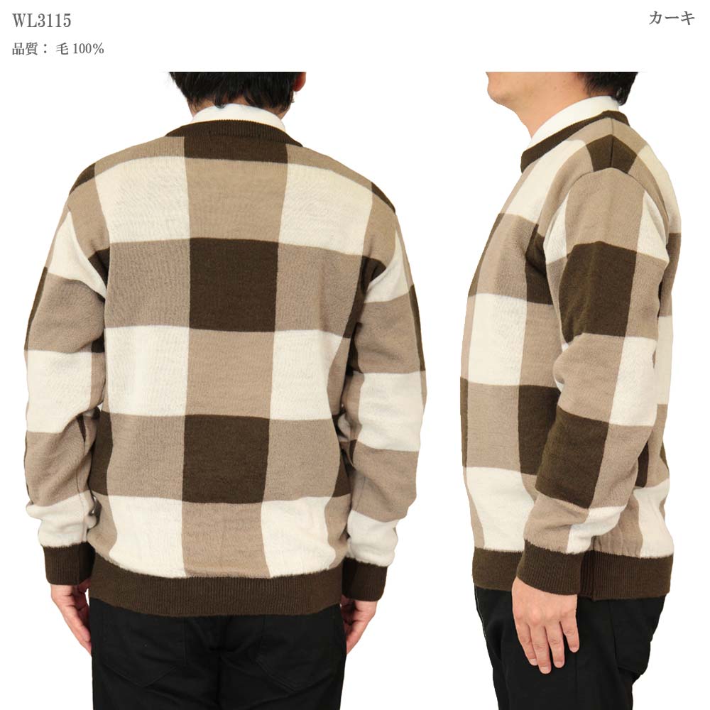 ◆SALEさらにクーポンで20%OFF◆ セーター 丸首(クルーネック) ウール100% 日本製 ジャカード編みブロック柄ニット 10ゲージ 紳士/メンズ/シニア/国産【送料無料】 (3115)