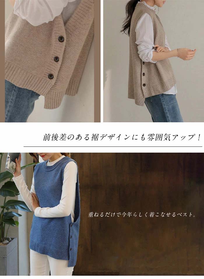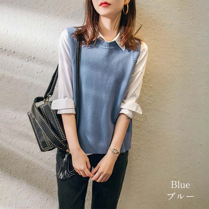 ニットベスト ニット ベスト タンクトップベスト ニットタンクトップ レディース トップス 重ね着 ベスト ノースリーブ タンク レイヤードレイヤード風 ニットタンクトップ 無地 シンプル