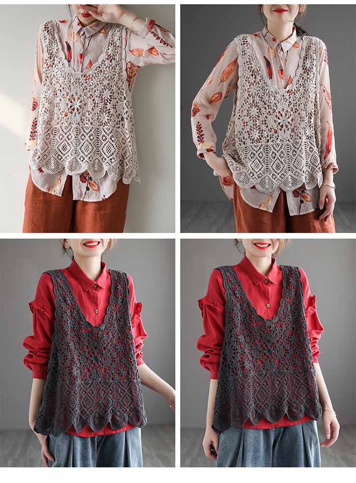 ベスト レディース 春夏 大きいサイズ 透かし編み サマーニット レース おしゃれ トップス 花柄 ノースリーブ ニットベスト プルオーバー Vネック レイヤード 重ね着 袖なし きれいめ カジュアル かわいい服 大人可愛い