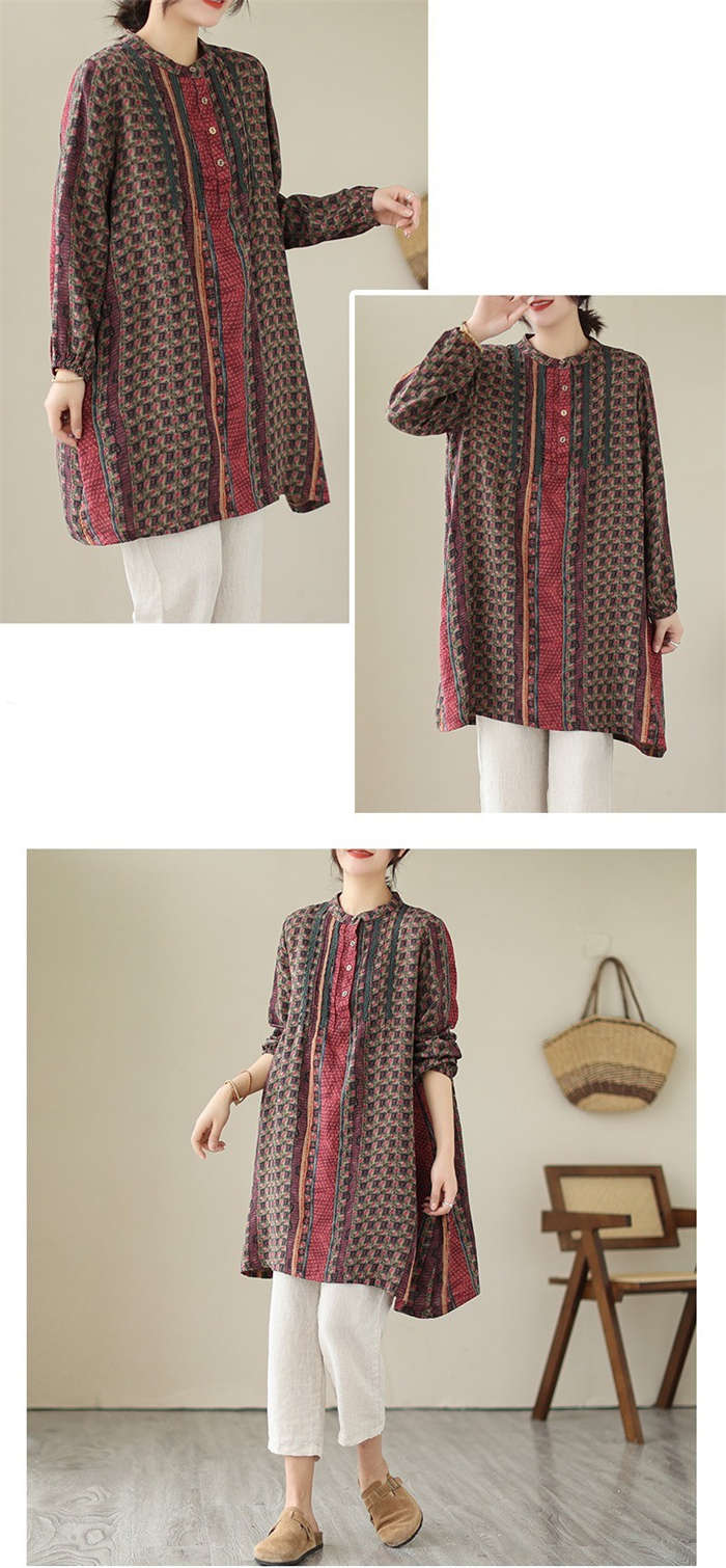 チュニック レディース ワンピース 夏 春 花柄 ブラウス ロング シャツ チュニック チュニックブラウス ミニ丈ワンピース ロングシャツ Aライン ポケット ゆったり 綿麻 長袖 体型カバー 二つの腕カバー 涼しい 通勤 通学 普段着 デート マタニティ リゾート UVカット