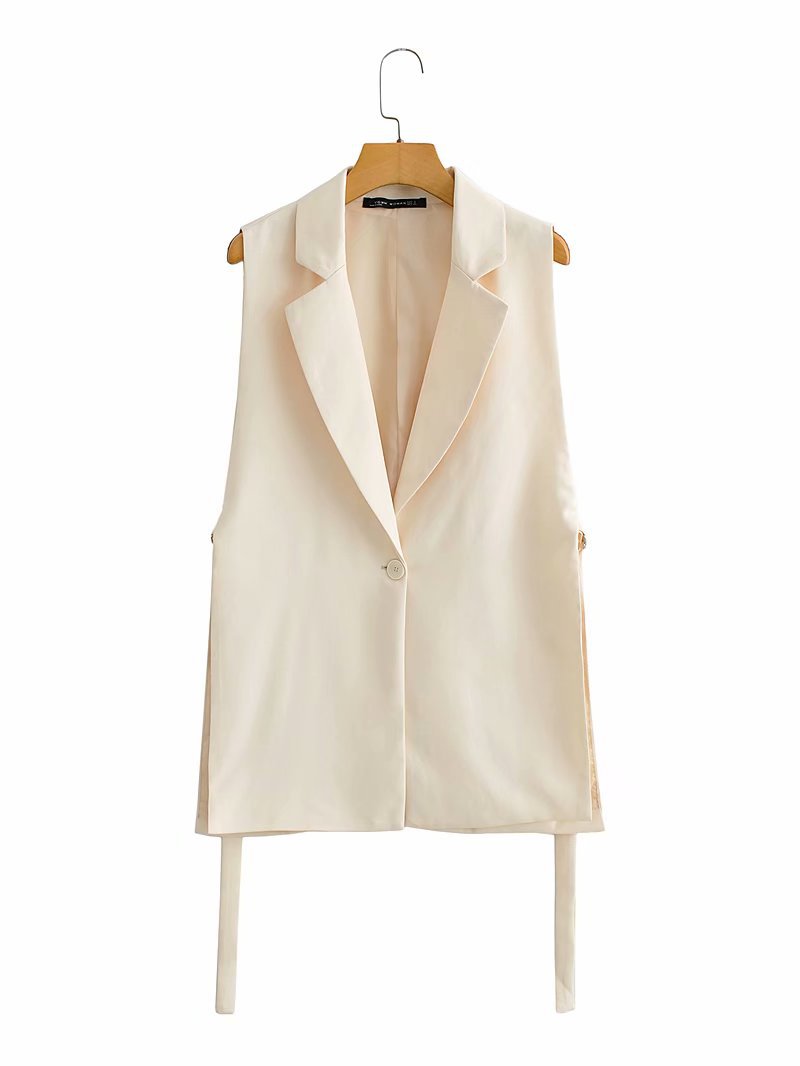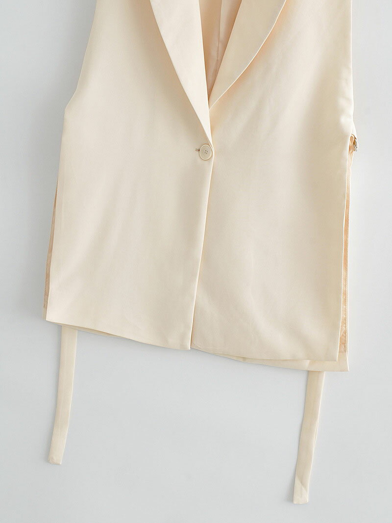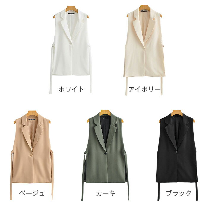 ジレ レディース 春夏 薄手 ベスト テーラード フォーマル 前開き ベルト付き サイドベルト Vネック オーバーシルエット ノースリーブ 袖なし 羽織り レイヤード 春 夏 秋 オフィス カジュアル 高見え 抜け感 こなれ感 大人 キレイめ シーズンレス 30代 40代 S M L