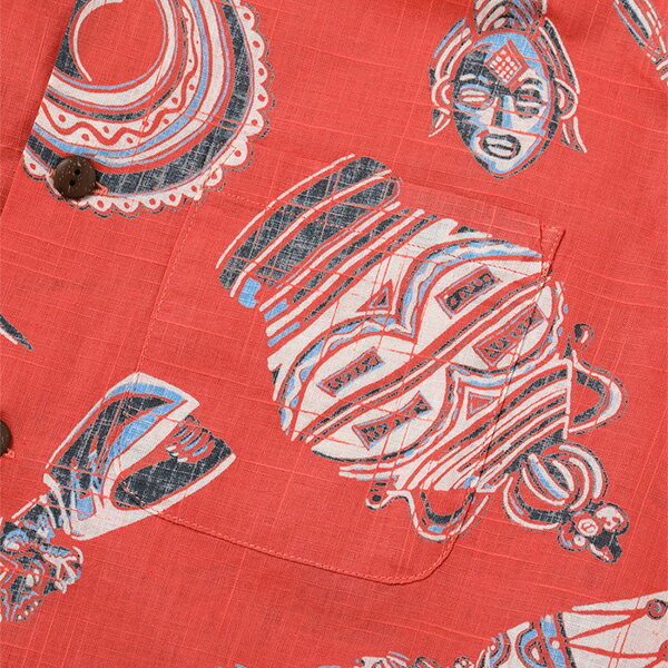 サンサーフ【SUN SURF】SS39502 COTTON LINEN SLUBYARN OPEN SHIRT “NATIVE MASK” ハワイアンシャツ アロハシャツ シャツ 半袖 サーファー メンズ 日本製 トップス 綿 麻 コットン リネン スラブヤーン 夏服 海 ハワイ 総柄 柄シャツ【送料無料】