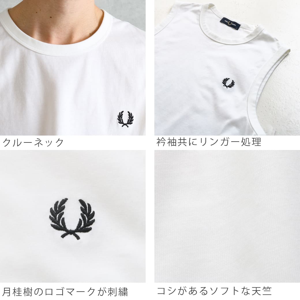 フレッドペリー FRED PERRY Crew Neck Tank M7777 メンズ レディース トップス ノースリーブ タンクトップ ワンポイント 刺繍