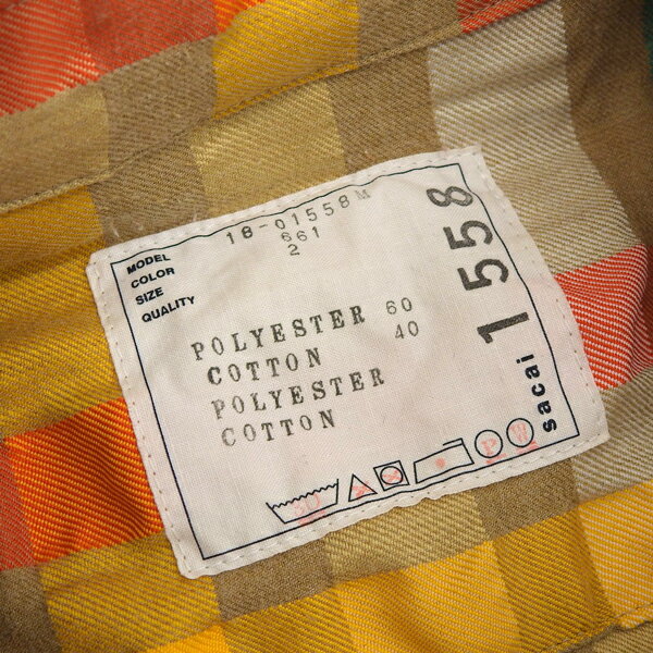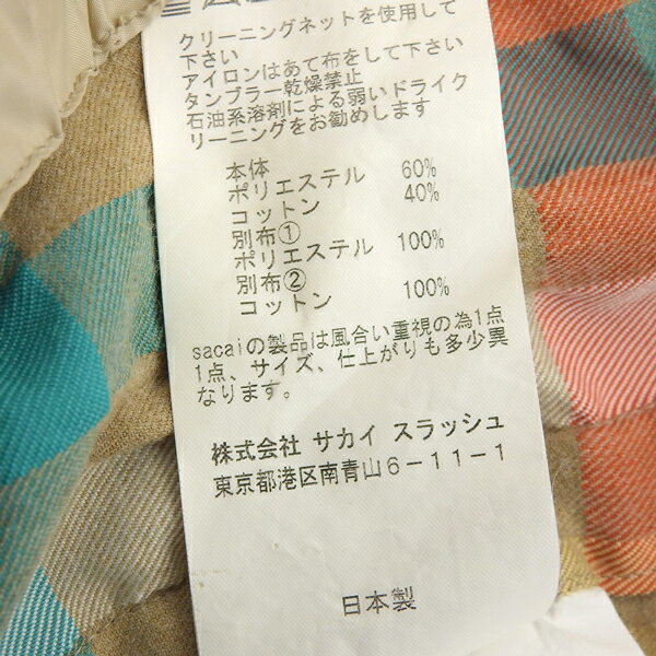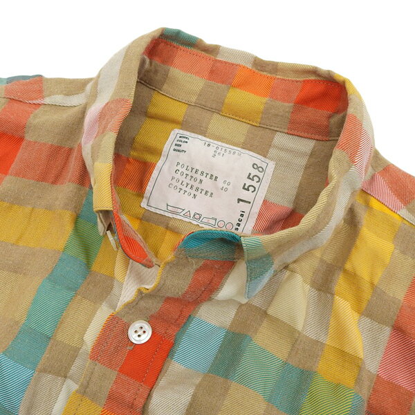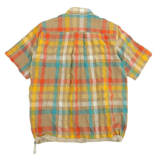 【中古】 ◆美品◆ サカイ sacai シワ加工 チェック柄 半袖 シャツ メンズ ベージュ マルチカラー size2 18-01558M 2018SS [Y03025]
