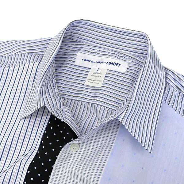 【中古】 ◆美品◆ コムデギャルソンシャツ COMME DES GARCONS SHIRT コットン ラインパッチワーク シャツ メンズ ブルー系 sizeS W20066 [Y03277]