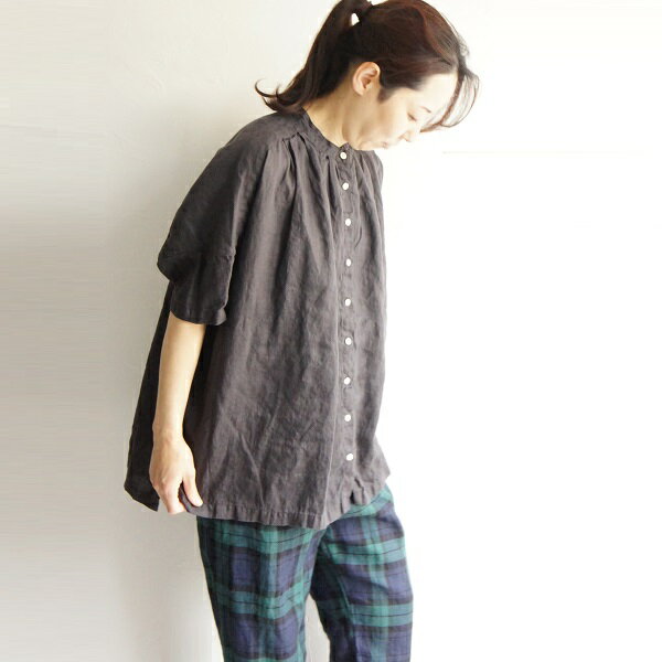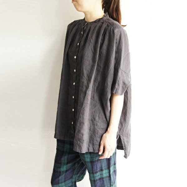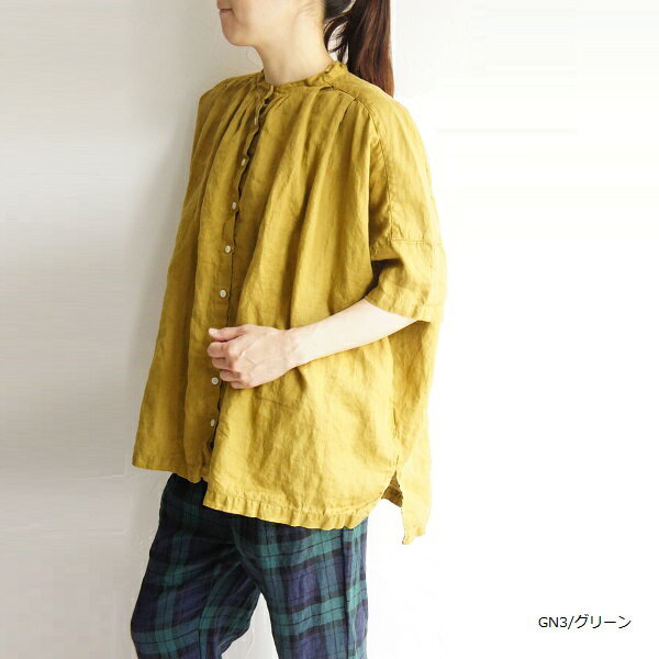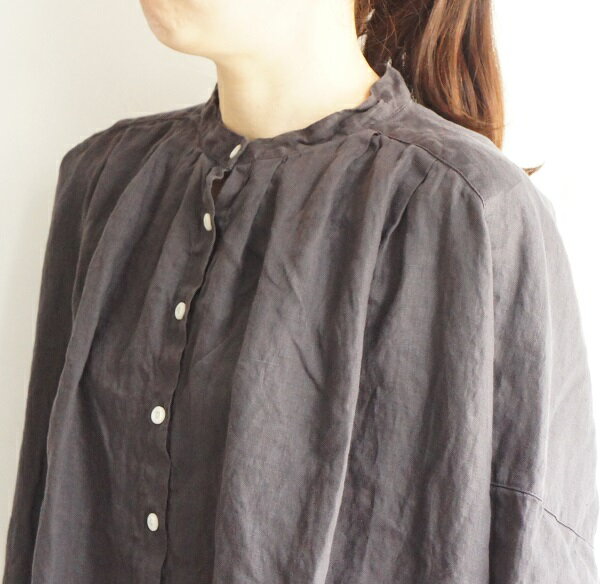 SUNVALLEY サンバレー フレンチリネン 麻 ドルマン スタンド 日本製品染め シャツ チュニック SK1009224 sunvalley レディースファッション 服 大人の ナチュラル ゆったり 大人コーデ きれいめ シンプル カジュアル 30代 40代 50代 60代 大きい 大人 プルオーバー ブラウス