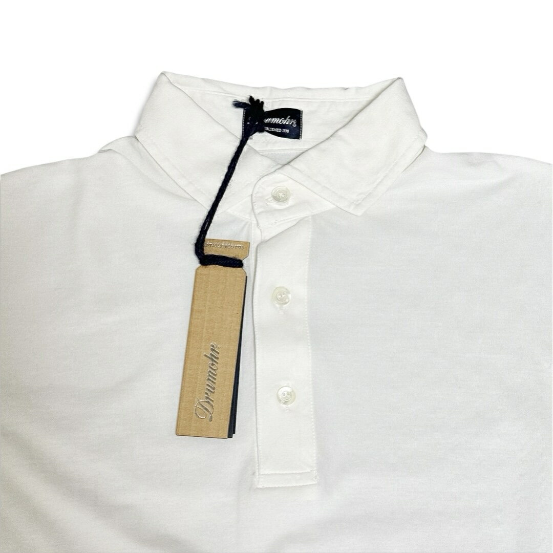 Drumohr ドルモア 新品タグ付き 長袖 ポロシャツ ホワイト 無地メンズ size S イタリア製 正規品【未使用】【鑑定済み】【送料無料】
