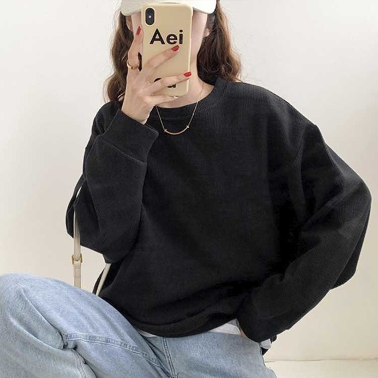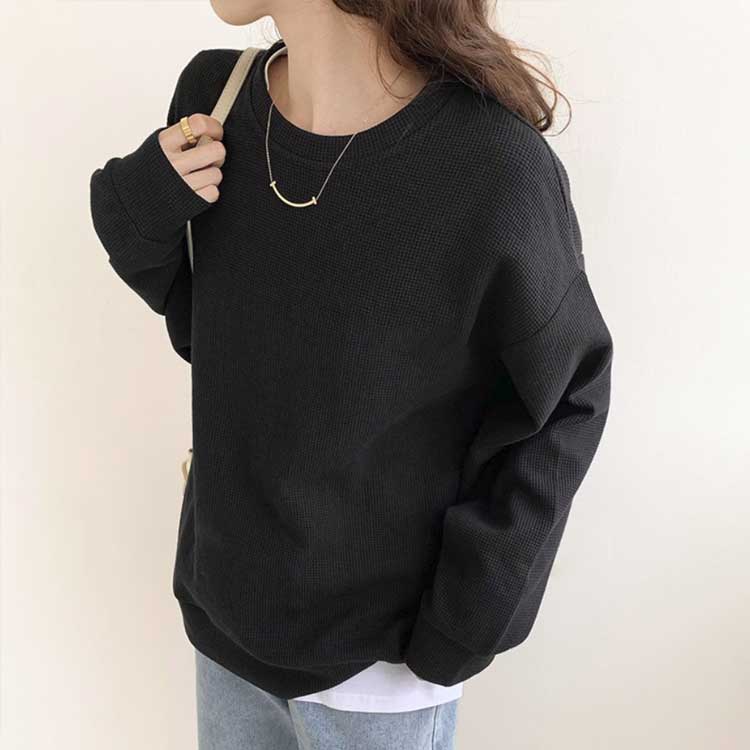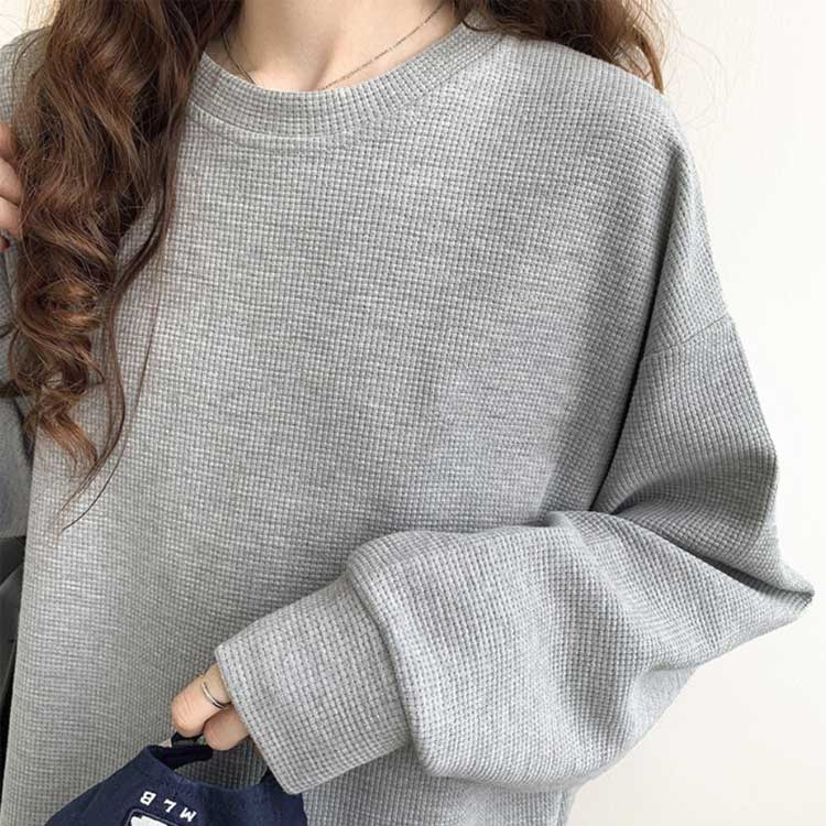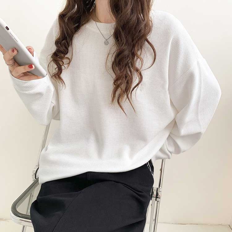 レディース 春秋 スウェット トレーナー 着痩せ ゆったり 韓国ファッション ワッフル ワッフル シンプル トップス Tシャツ ドロップショルダー 無地 おしゃれ カジュアル 大きいサイズ