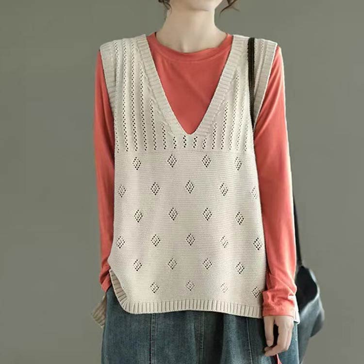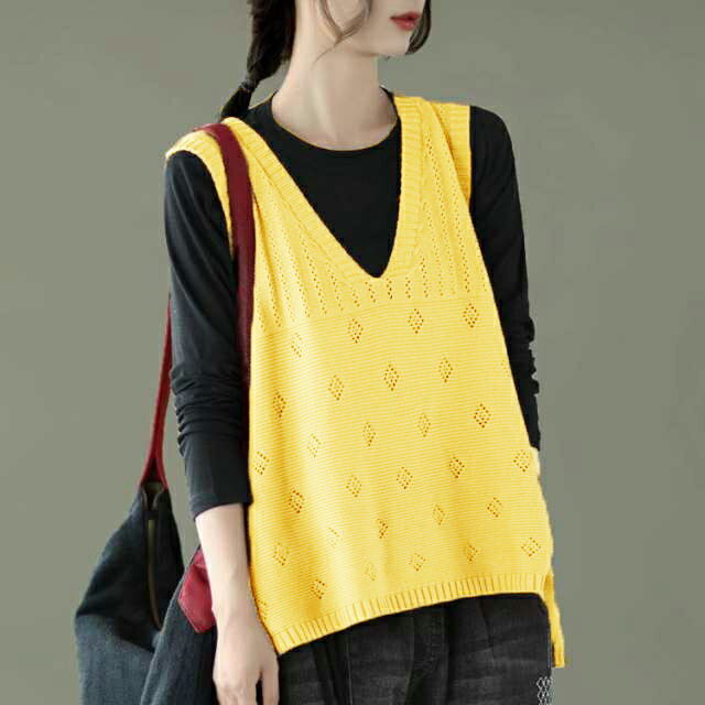 サマーベスト ニットベスト レディース 透かし編み 春夏 ジレ ベスト Vネック ノースリーブ ニット セーター プルオーバー トップス 大きいサイズ 着瘦せ レイヤード お洒落 重ね着