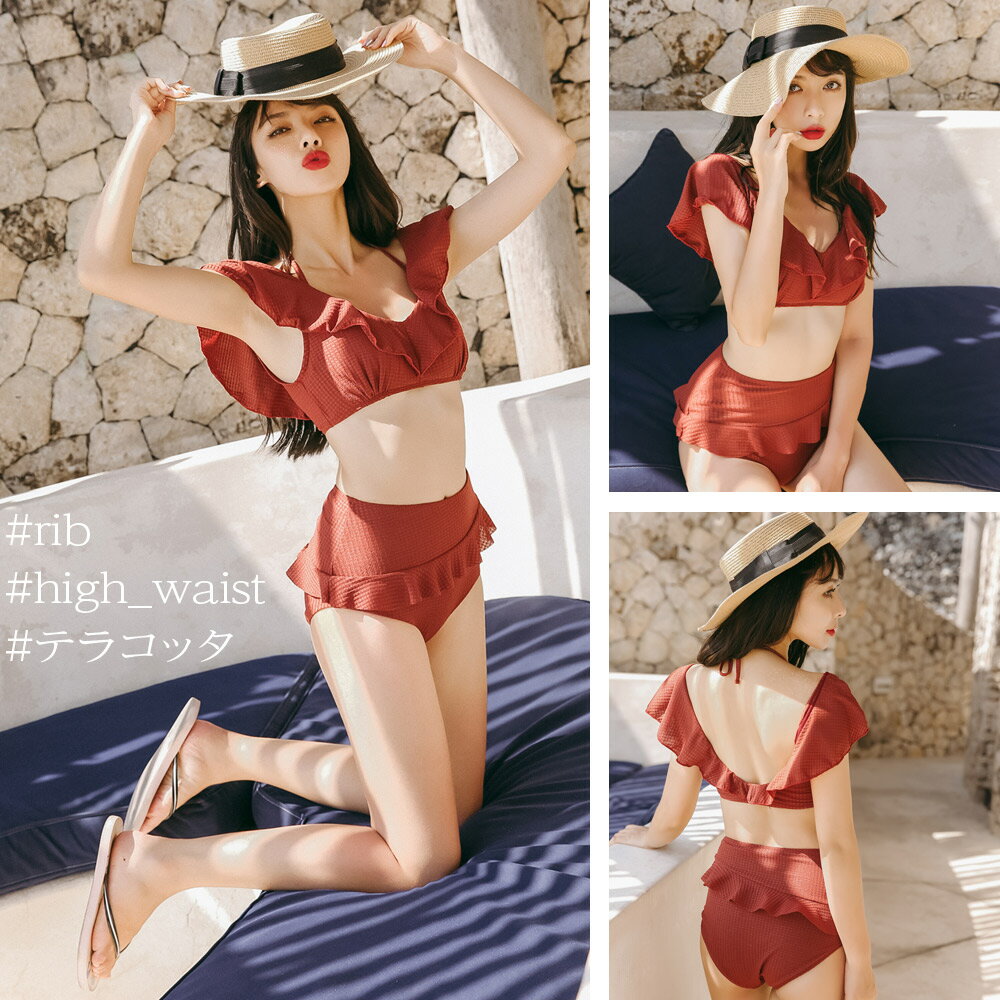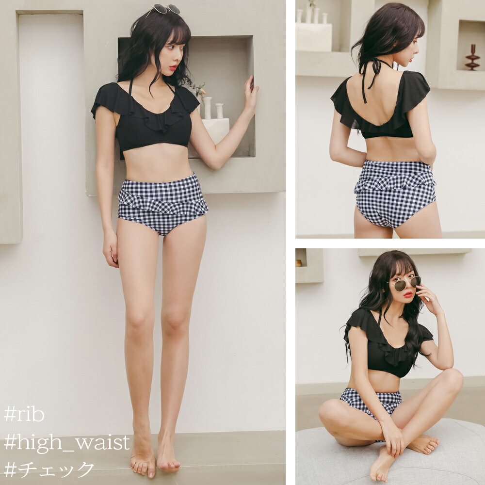 ビキニ 水着 レディース 体型カバー 2点セット 大人 オフショル オトナ女子 セクシー ハイウエスト 女性用 ホルターネック ミセス 大きいサイズ ママ水着 おしゃれ パッド付き 黒 白 盛れる かわいい 夏 海 プール ビーチ 水着 2020新作 50代 40代 30代 20代