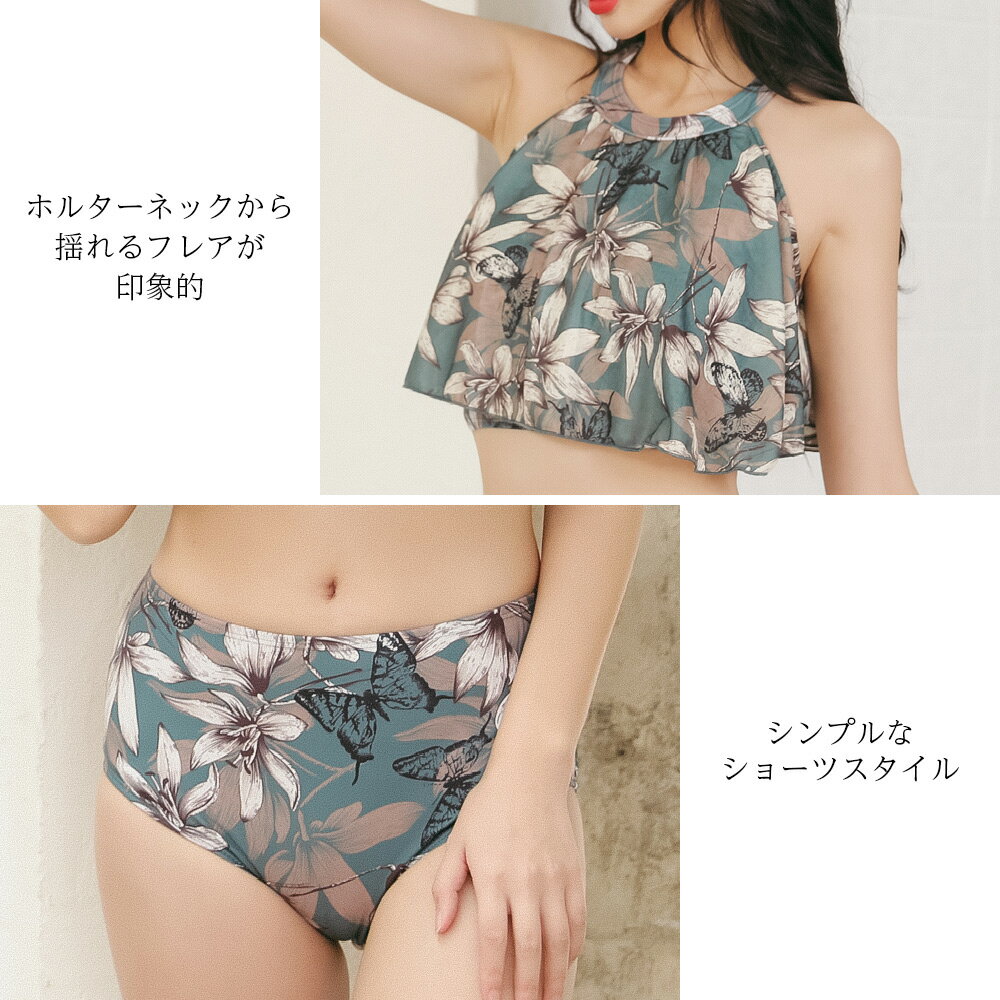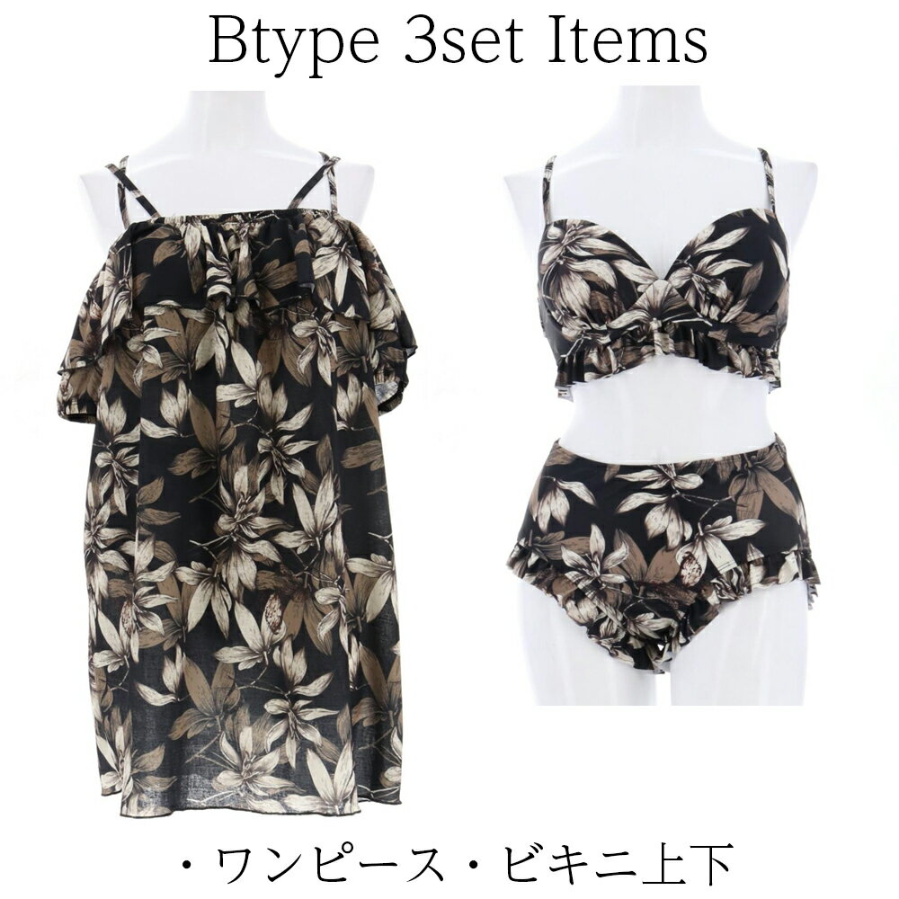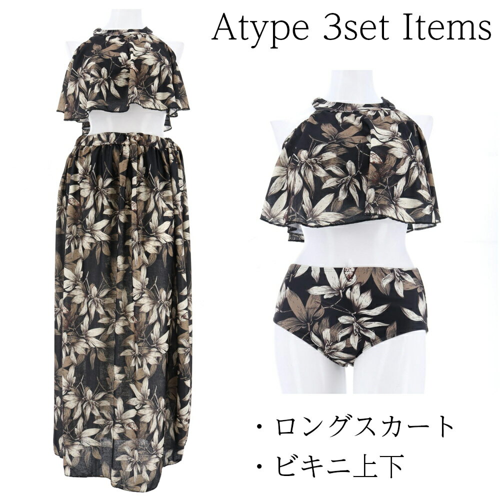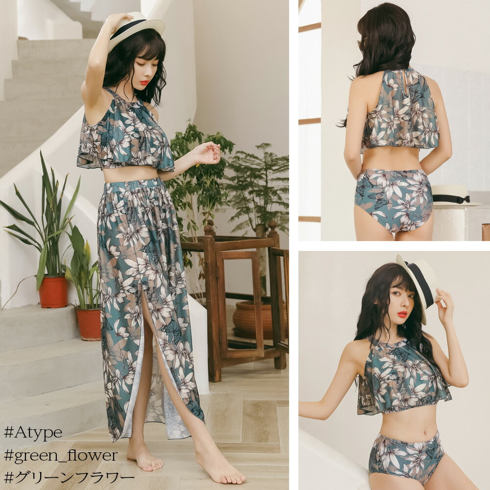ビキニ 水着 レディース 3点セット ロングスカート 体型カバー 花柄 オトナ女子 バックシャン かわいい 大人 ワンピース 大きいサイズ ママ水着 ハイウエスト セクシー おしゃれ パッド付き 黒 白 赤 黄 盛れる 夏 海 50代 40代 30代 20代