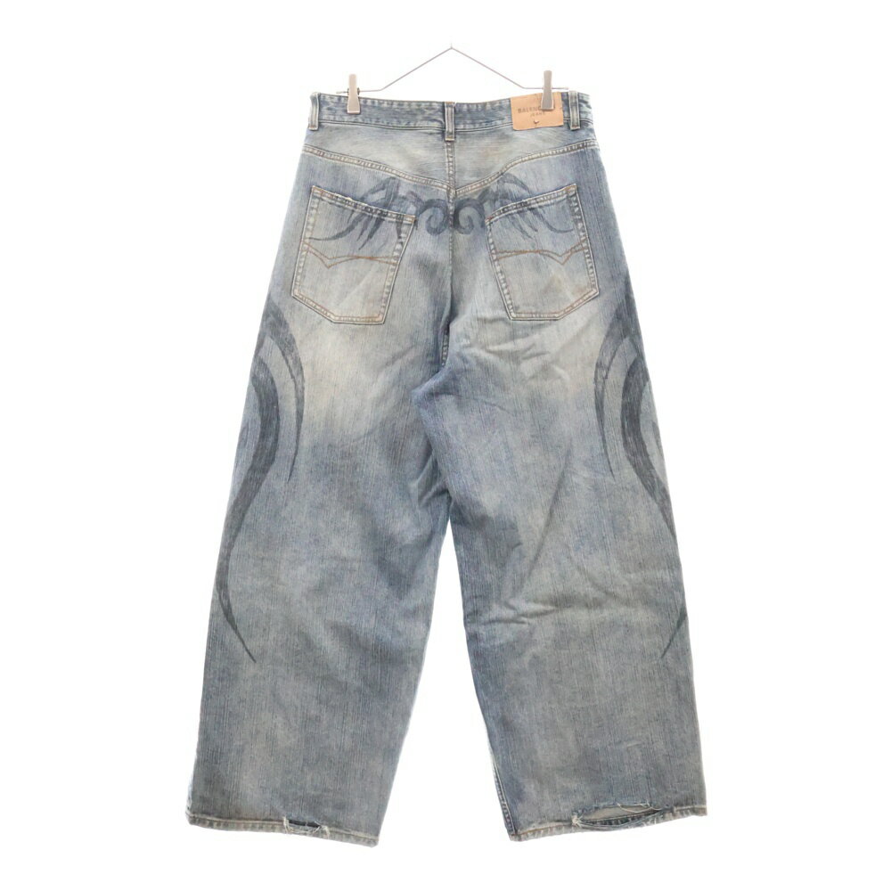BALENCIAGA(バレンシアガ) サイズ:XS Y2K ストレッチニー BAGGY トライバル バギーデニムパンツ インディゴ 809360 TRW77【中古】【程度A】【カラーブルー】【取扱店舗原宿】