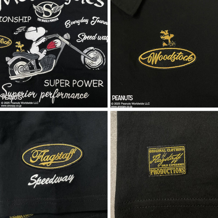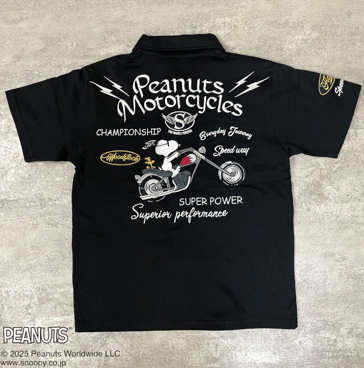 スヌーピーxFLAGSTAFFコラボポロシャツ 452095 SNOOPY BIKER(ブラック) アメカジ キャラクター PEANUTS バイク