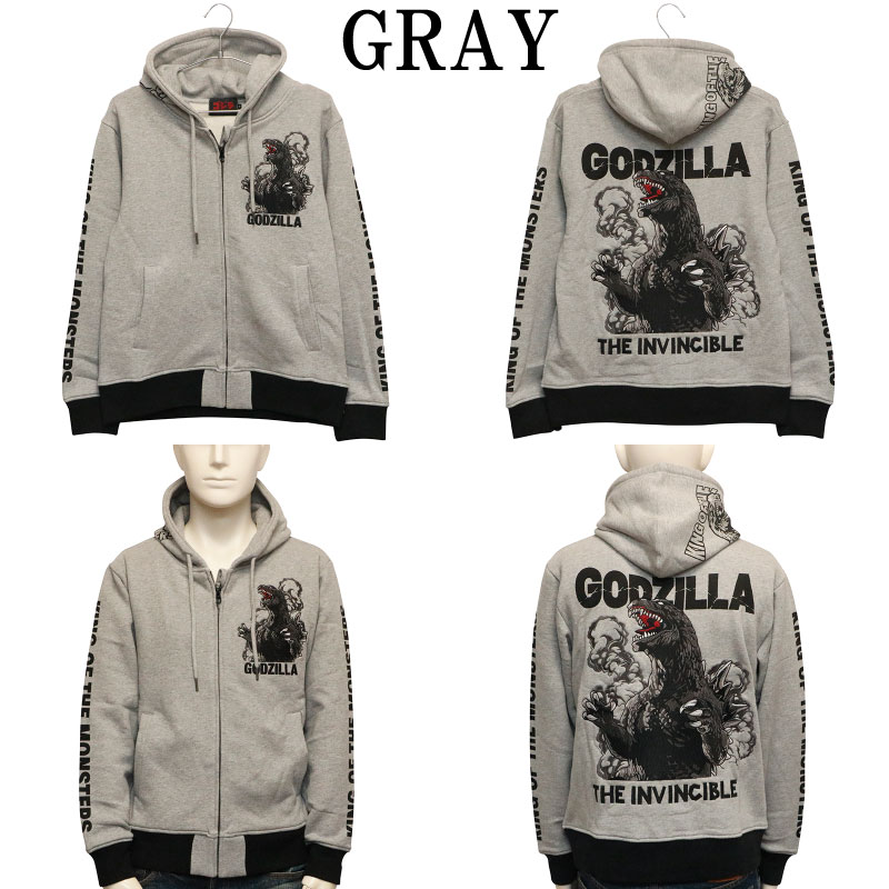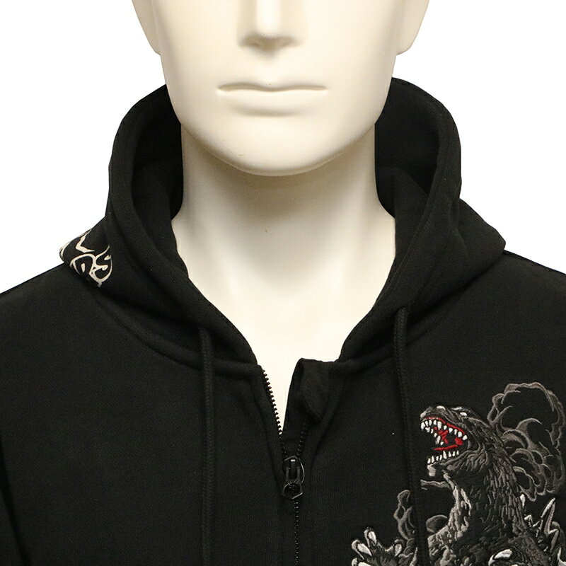 ゴジラ 刺繍 ZIP UP パーカー ( GZL-2404 ) パーカー ジップパーカー 東映 映画 特撮 怪獣 GODZILLA ゴジラ 刺繍 ブラック グレー 2色展開 送料無料