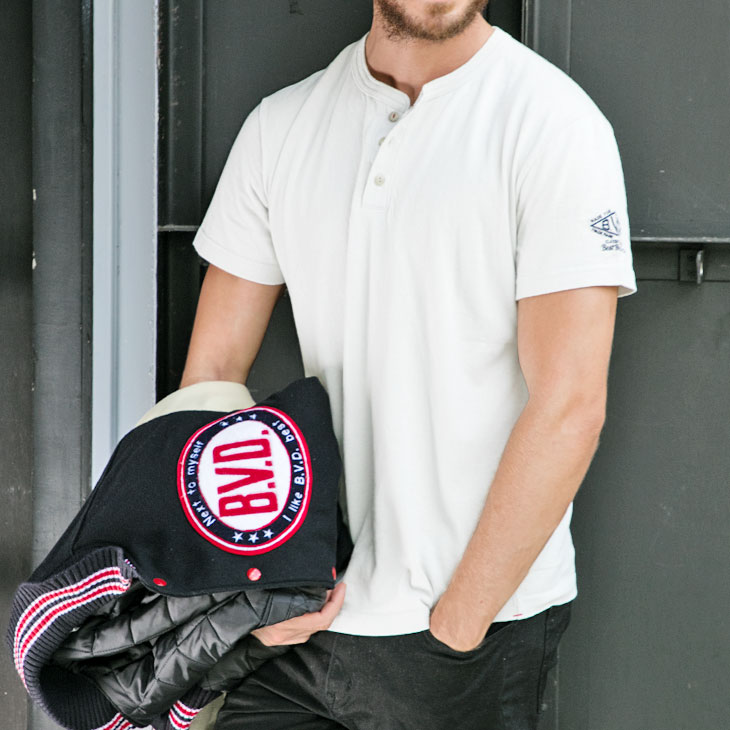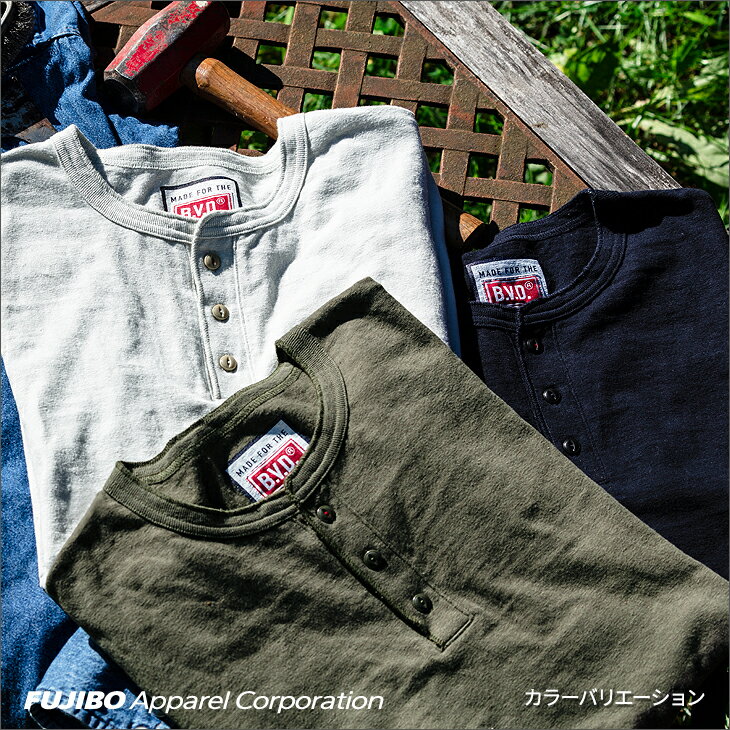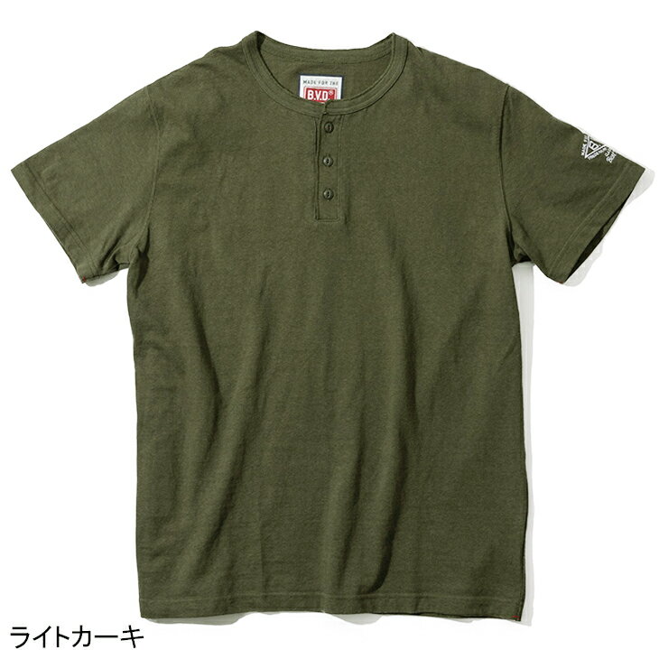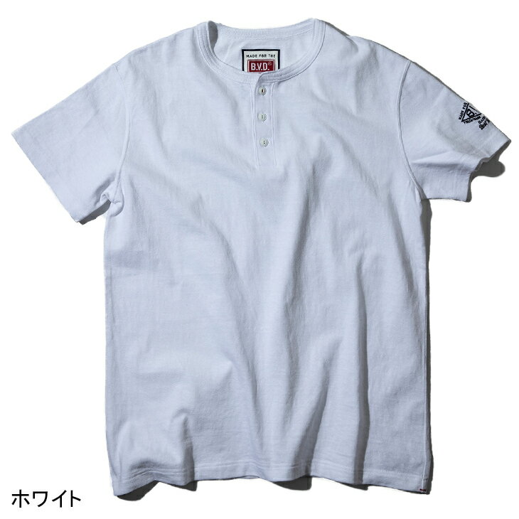 B.V.D. 日本製 ヘビーウエイト 綿100% ヘンリーネックTシャツ ヘイルメリー Hail Mary メンズ 半袖 男性 ヘビーT