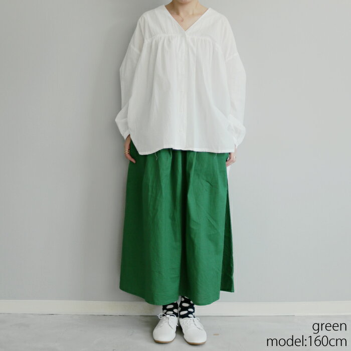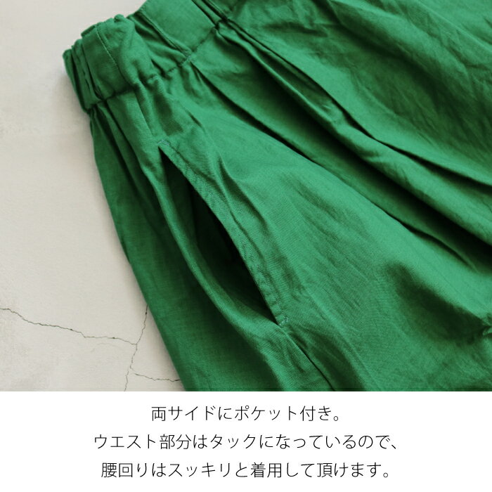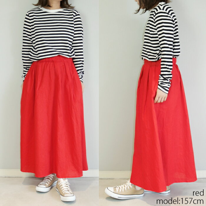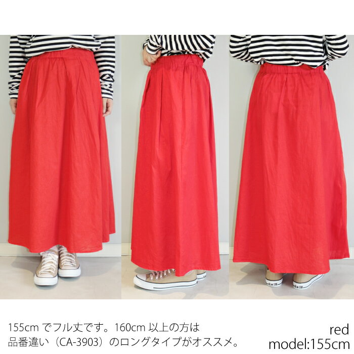 【日本製】ウエストゴムで腰回りすっきりなコットンリネンスカート ミドル丈 ロング丈 ギャザー 無地 グリーン ブルー レッド ブラック フリーサイズ 綿麻 シンプル 大人カジュアル ナチュラル 30代 40代 50代 春 夏 秋 レディース 送料無料 CA-3902