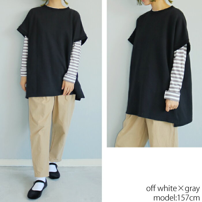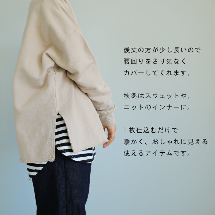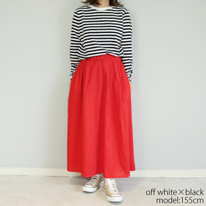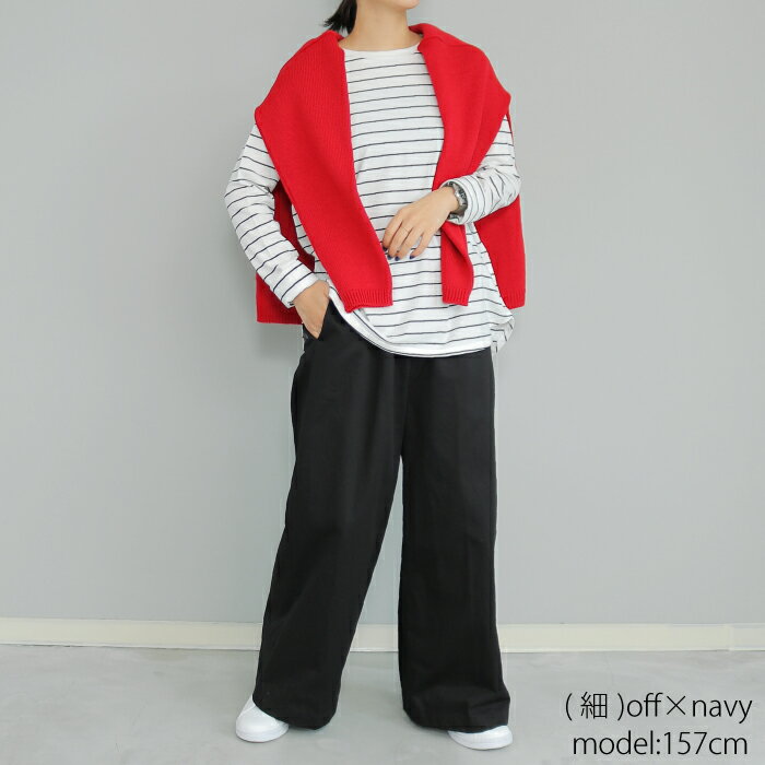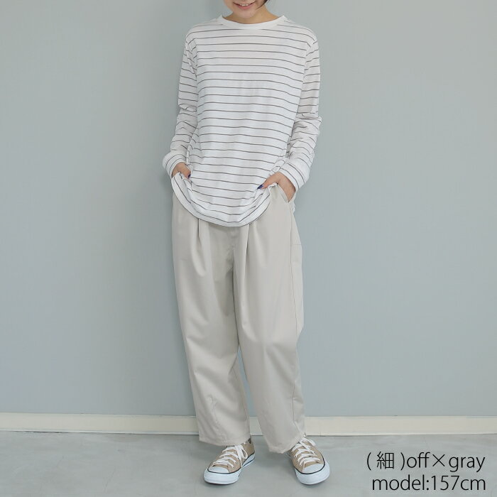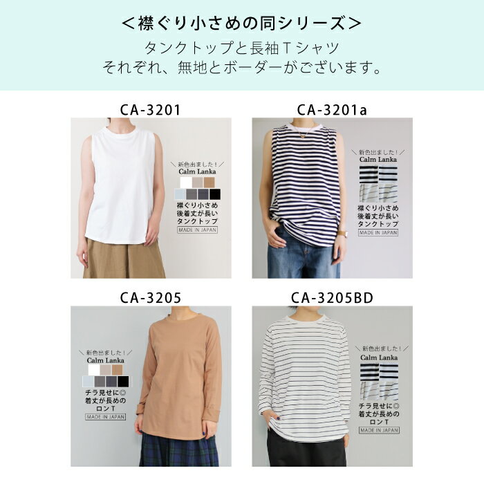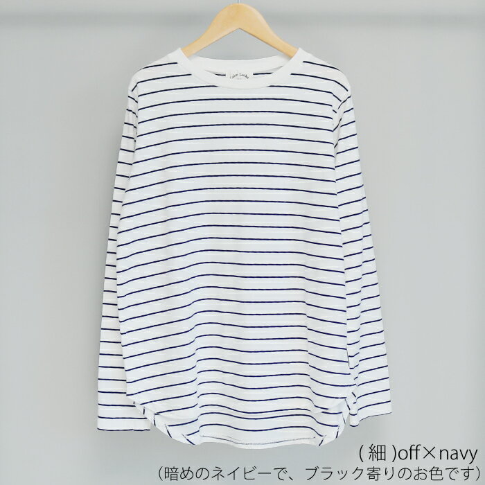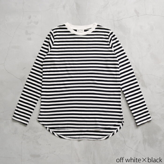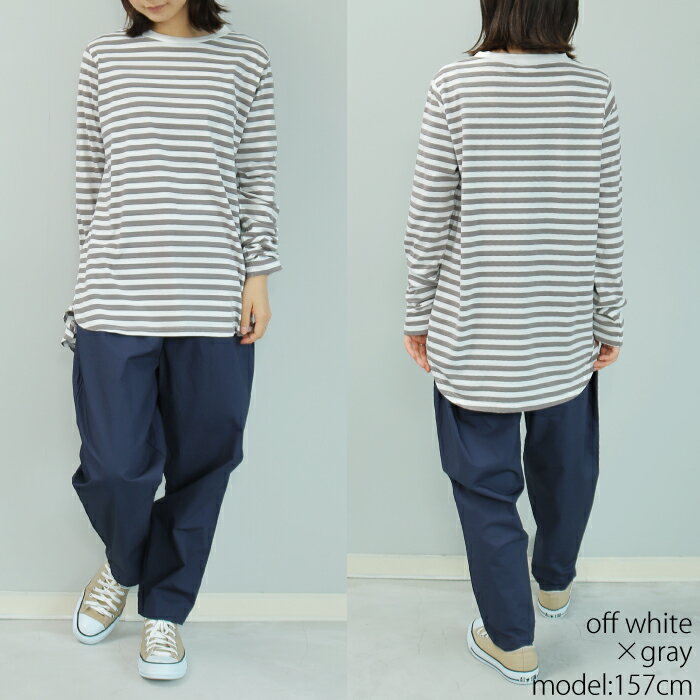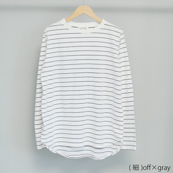 【日本製】【レターパック対応可】襟ぐり小さめ 着丈長め ボーダーロンT 長袖 Tシャツ トップス カットソー シンプル 重ね着 チラ見せ インナー レイヤード オフホワイト グレー ブラック 大人カジュアル ナチュラル 春夏 秋冬 レディース 綿100% 送料無料 CA-3205bd