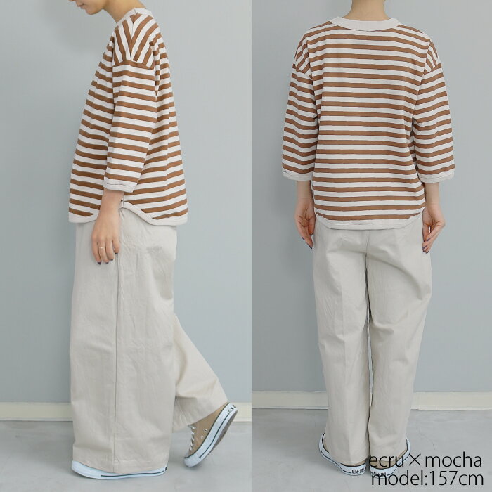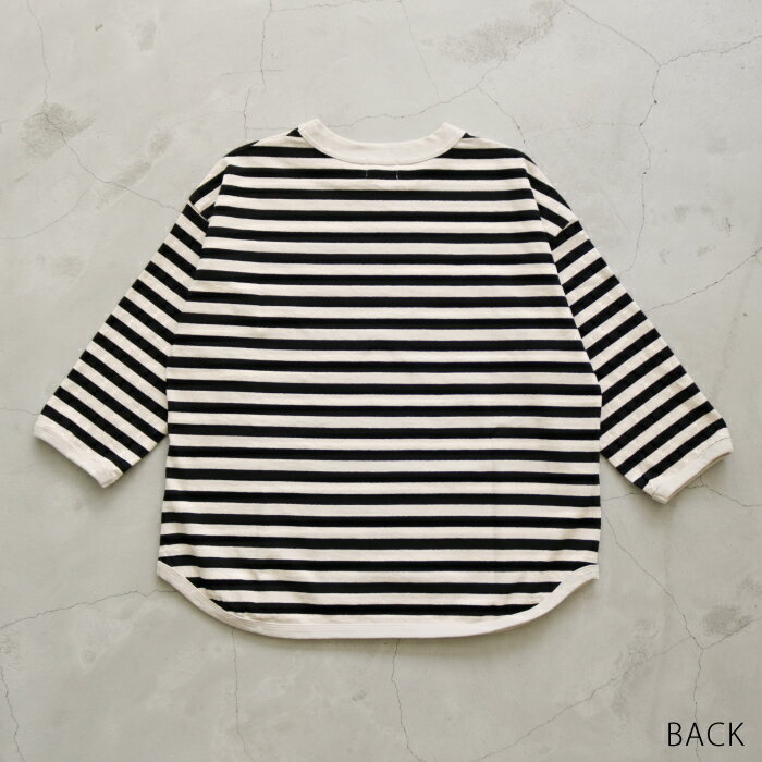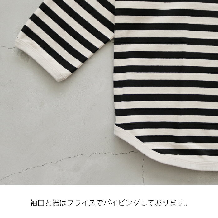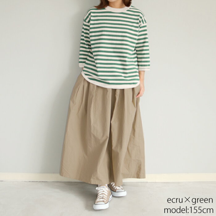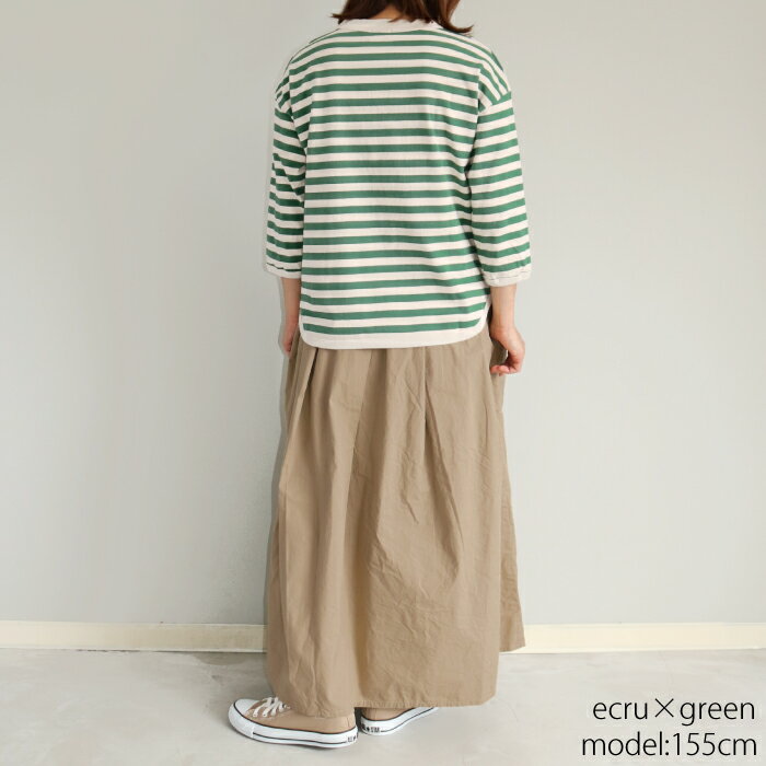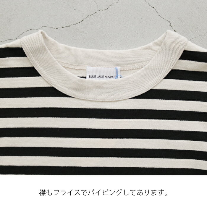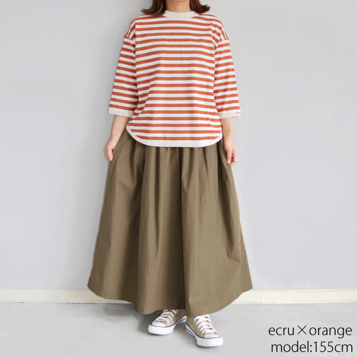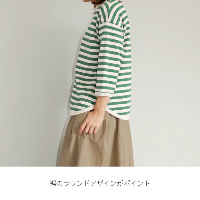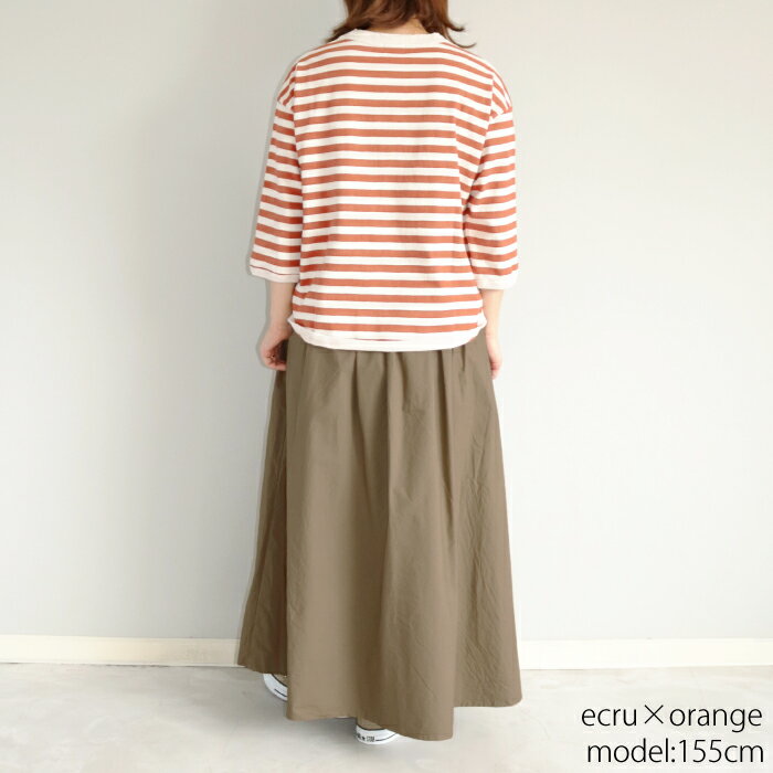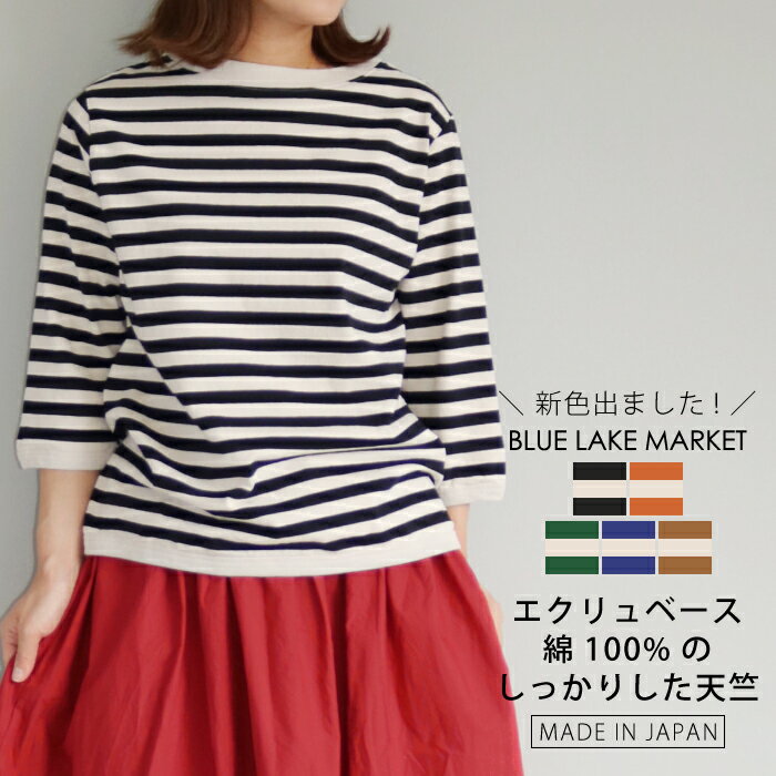 【ポイント10倍+クーポン有】【日本製】体のラインを拾いにくいしっかり天竺ボーダー 身幅広め七分袖Tシャツ プルオーバー カットソー ブラック オレンジ グリーン ブルー 大人カジュアル BLUE LAKE MARKET ブルーレイクマーケット 春 夏 秋 レディース 送料無料 B-442006