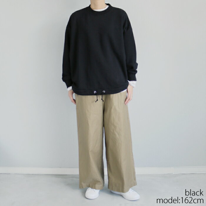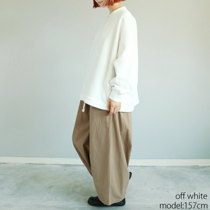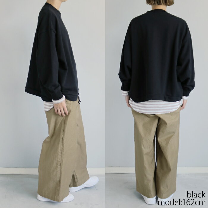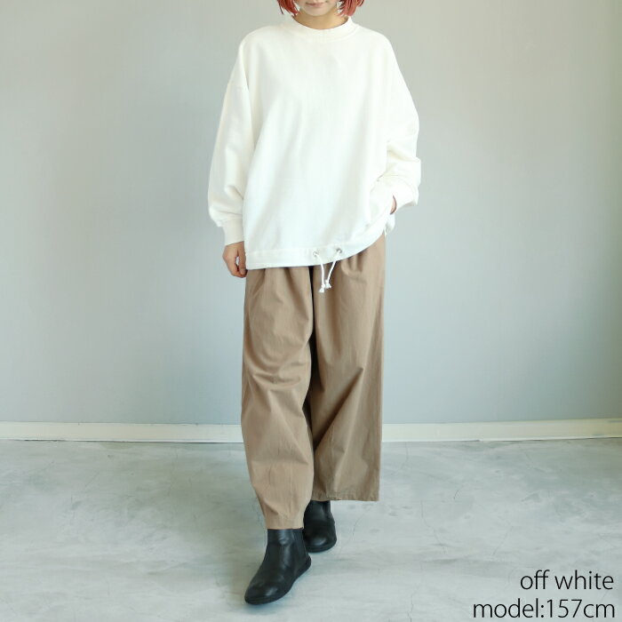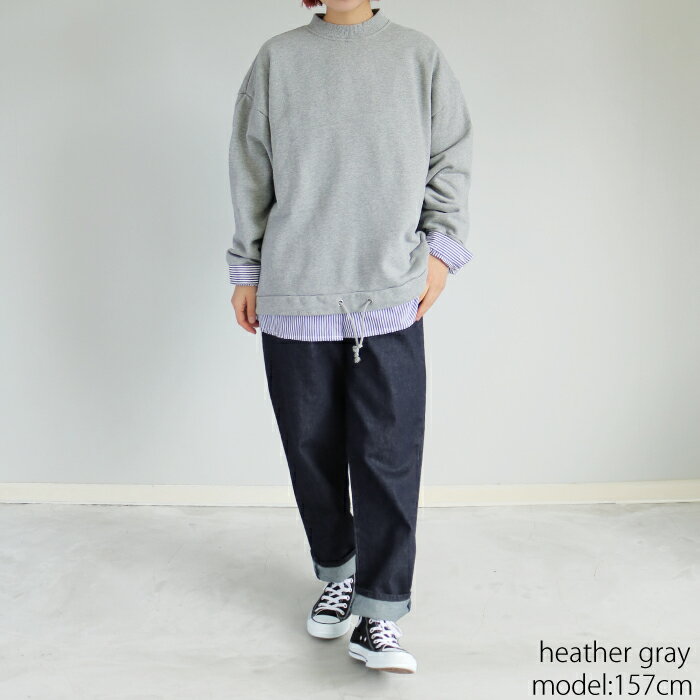 【日本製】いつもの裏毛 ヘムドロストトレーナー スウェット ゆったりサイズ リラックス 身幅 無地 オフホワイト グレー杢 パープル ブラック シンプル 大人カジュアル ナチュラル Calmlanka カームランカ 春 秋冬 レディース 送料無料 CA-1327
